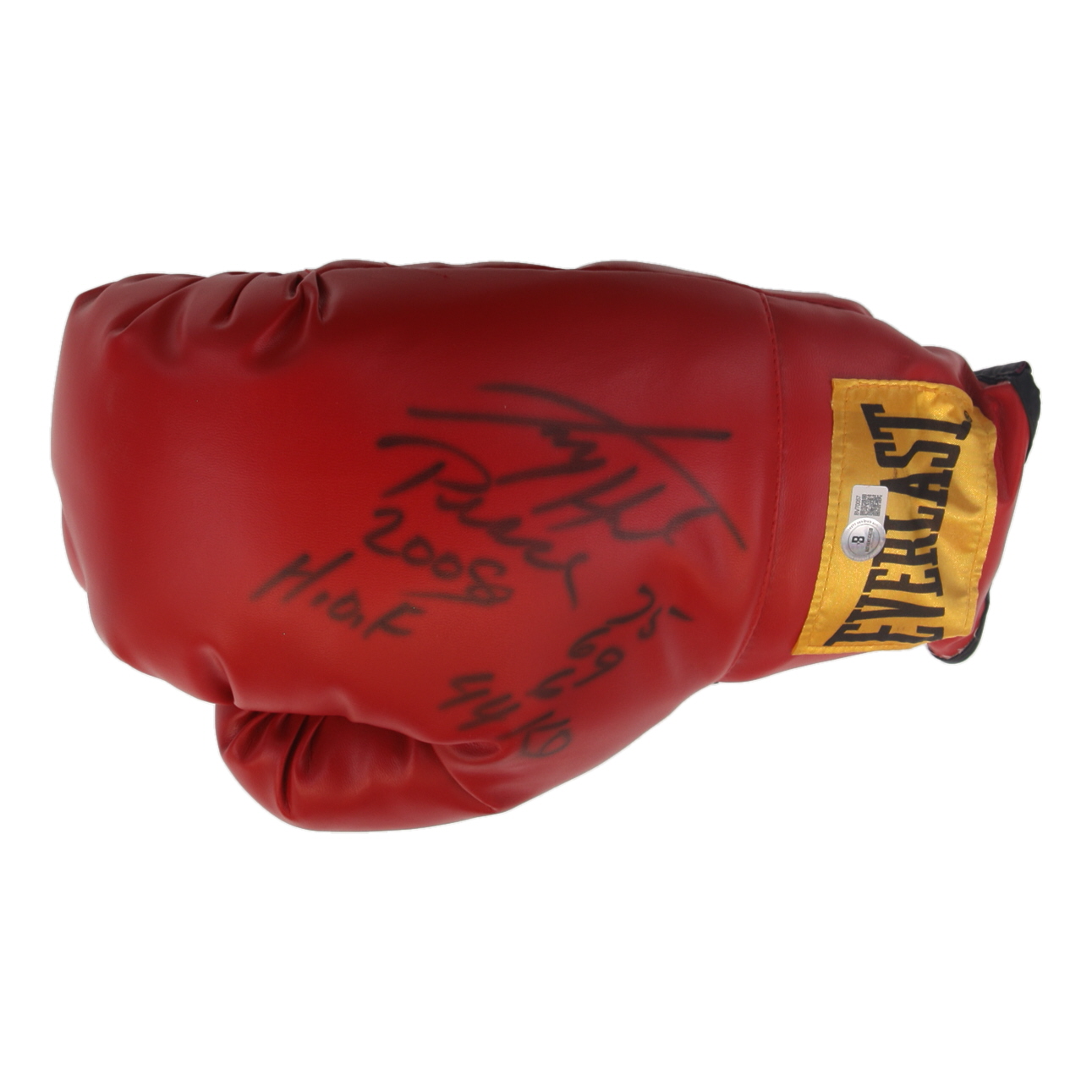 Larry Holmes Signed Everlast Boxing Glove Inscribed "2009 HOF" & "75 69 6 44 KO" (Beckett)