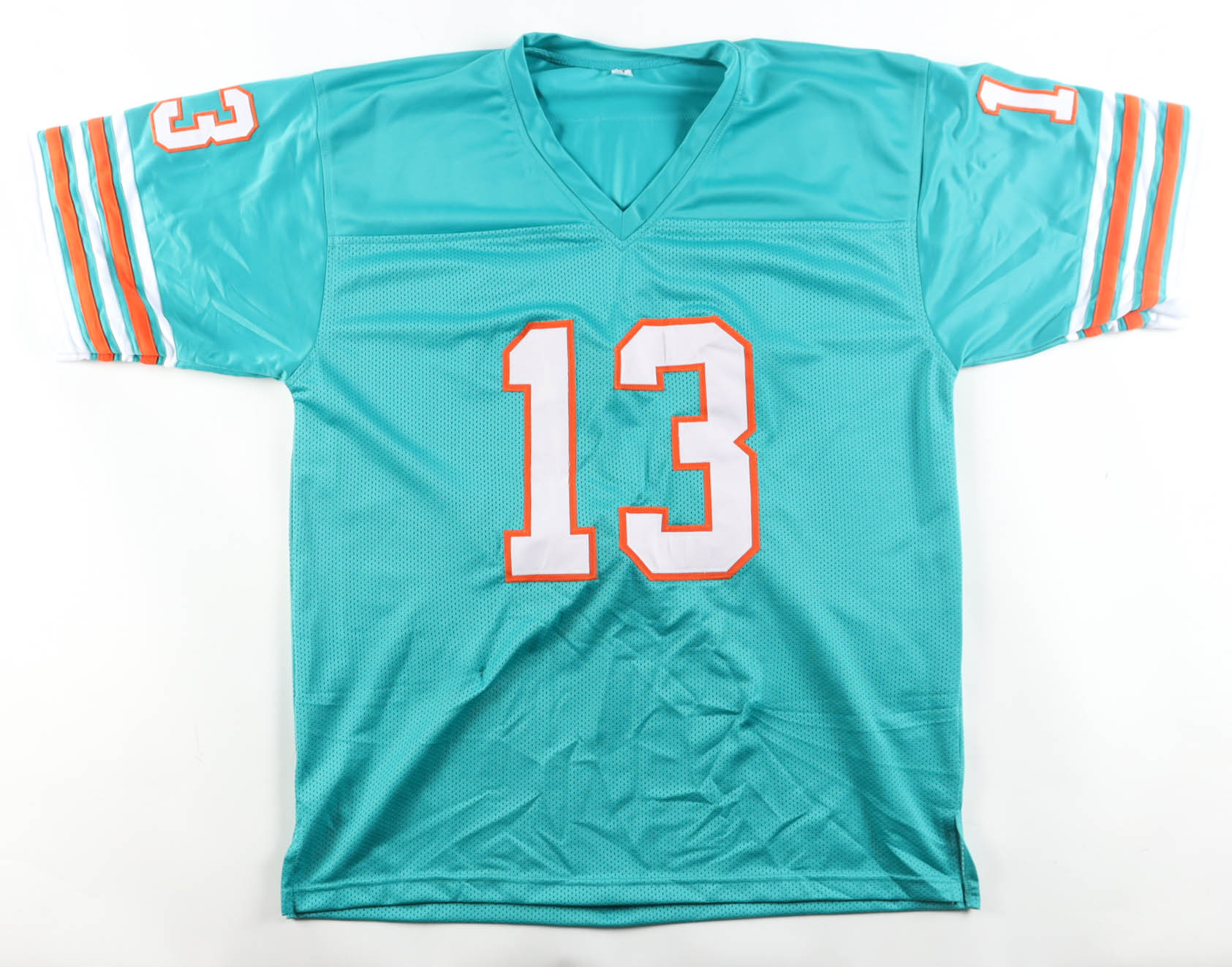 Custom jersey with everything sewn on, size XL. Hand-signed and inscribed by Dan Marino (Miami Dolphins, HOF).