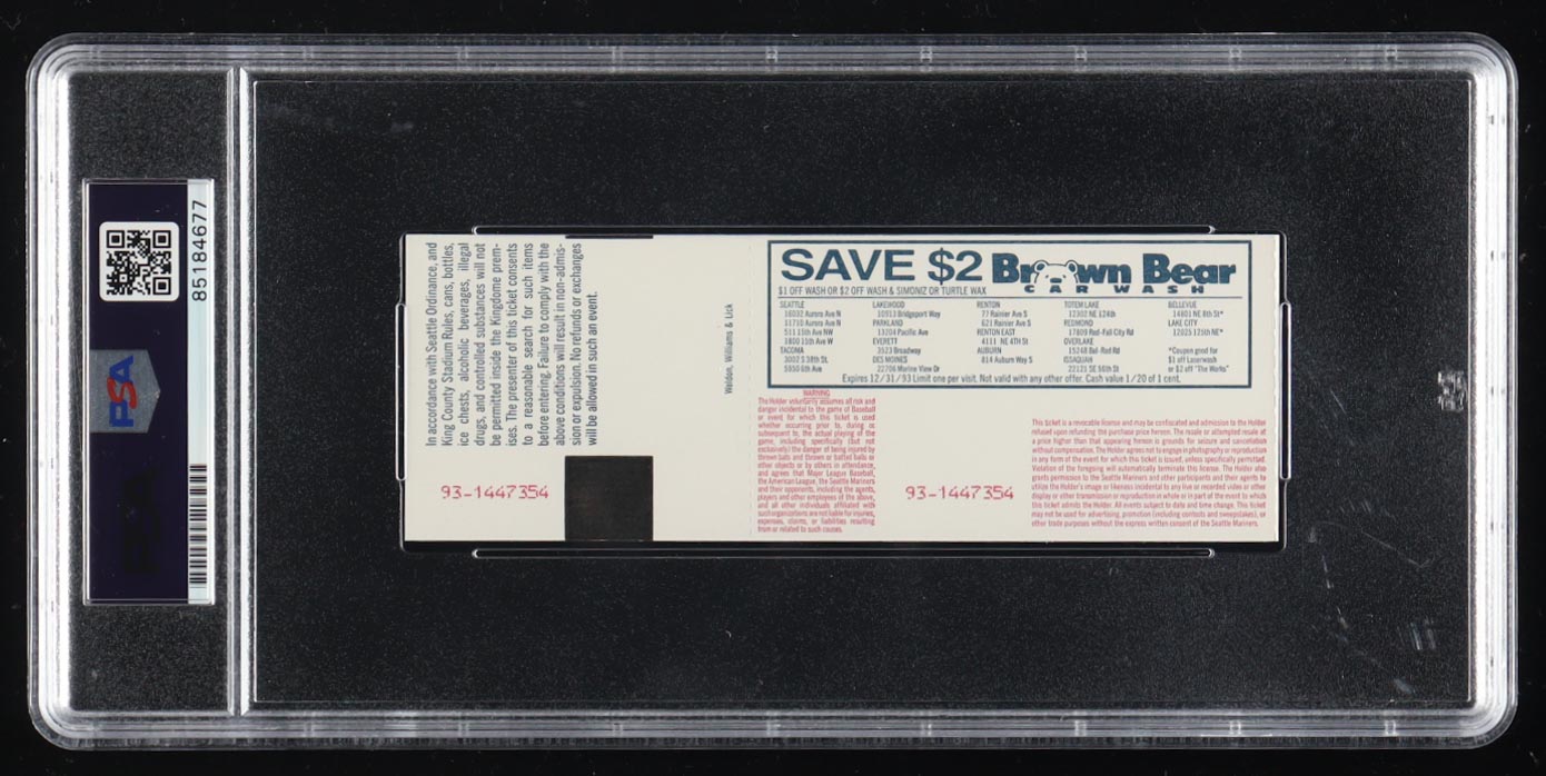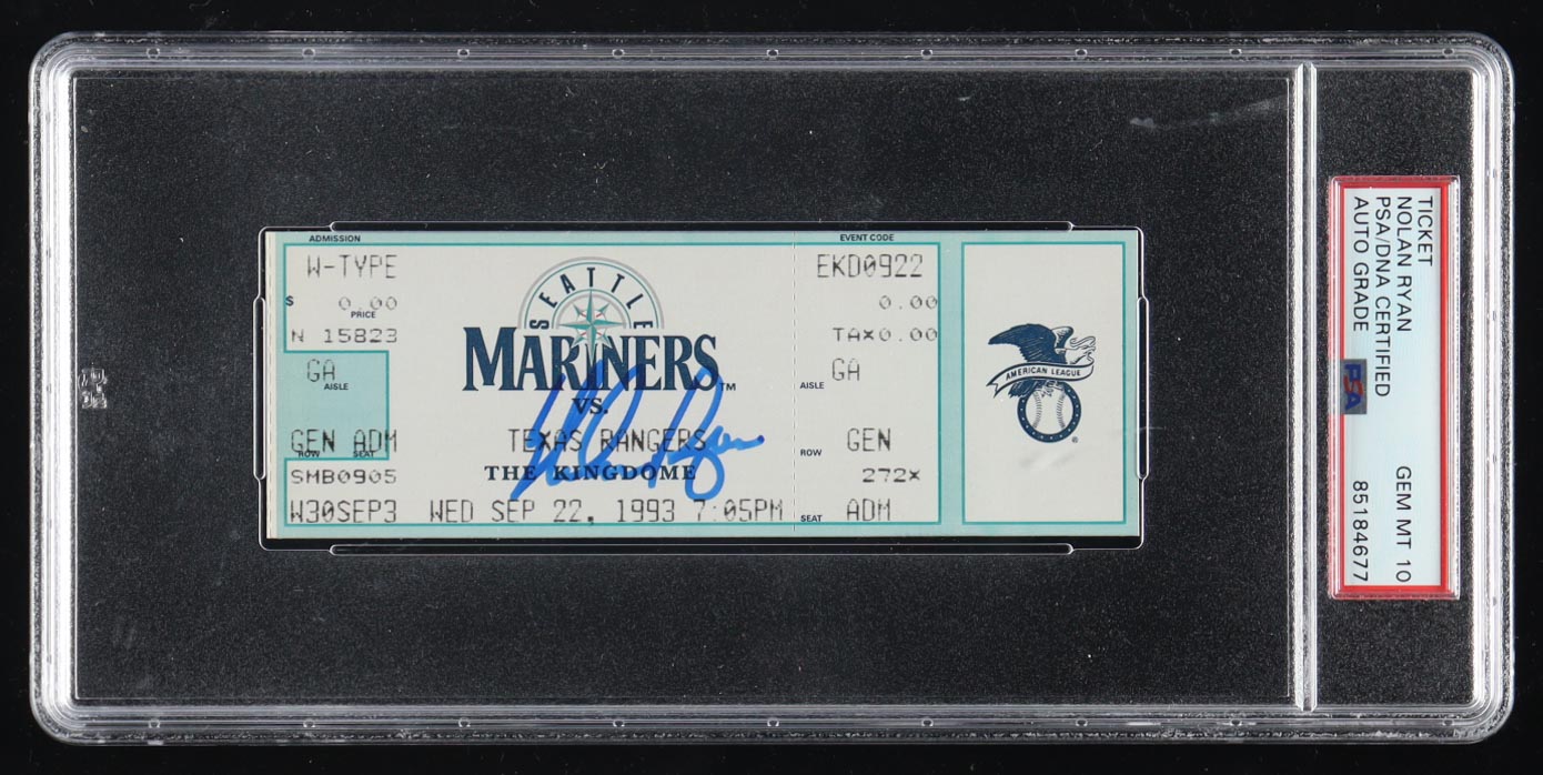 1993 Original Game ticket has been hand-signed by Nolan Ryan (Texas Rangers, HOF) and graded (PSA 10). Please see photos for details regarding the item.