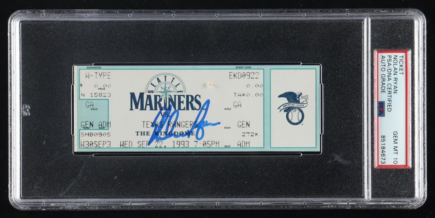 1993 Original Game ticket has been hand-signed by Nolan Ryan (Texas Rangers, HOF) and graded (PSA 10). Please see photos for details regarding the item.