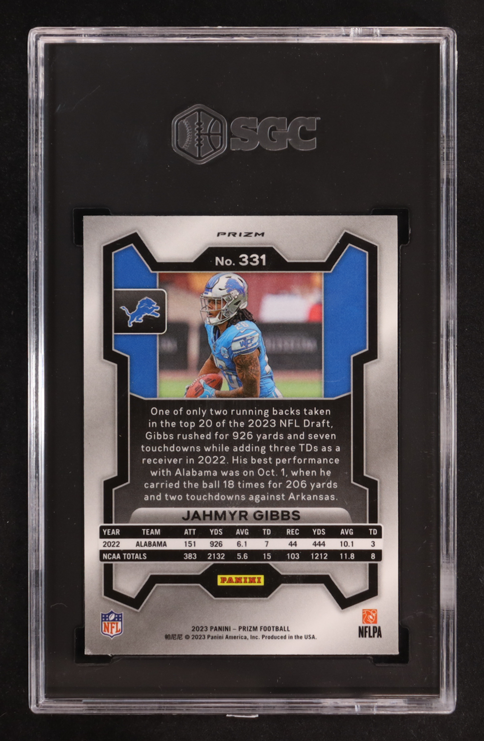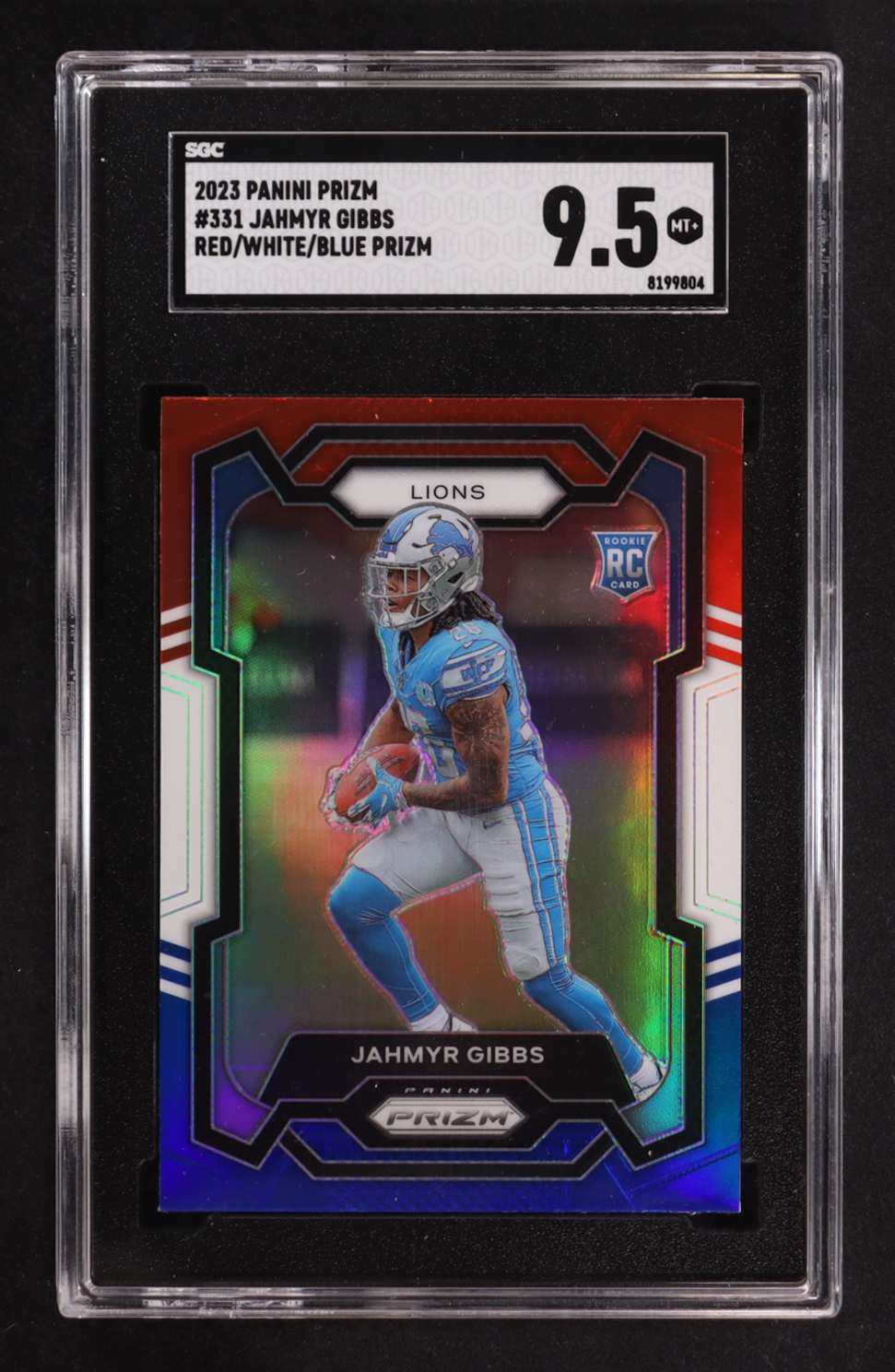 Jahmyr Gibbs 2023 Panini Prizm Prizms Red White and Blue #331 RC (SGC 9.5)