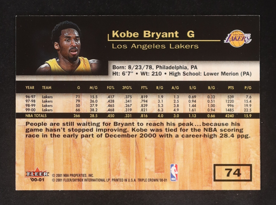 Kobe Bryant 2000-01 Fleer Triple Crown #74