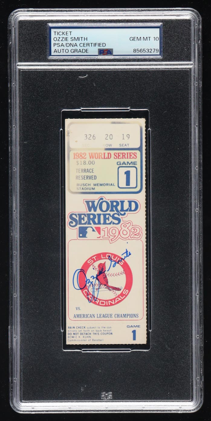 Ozzie Smith Signed 1982 Original World Series Game Ticket (PSA Auto GEM MT 10)