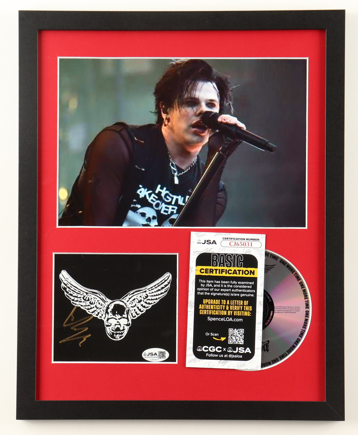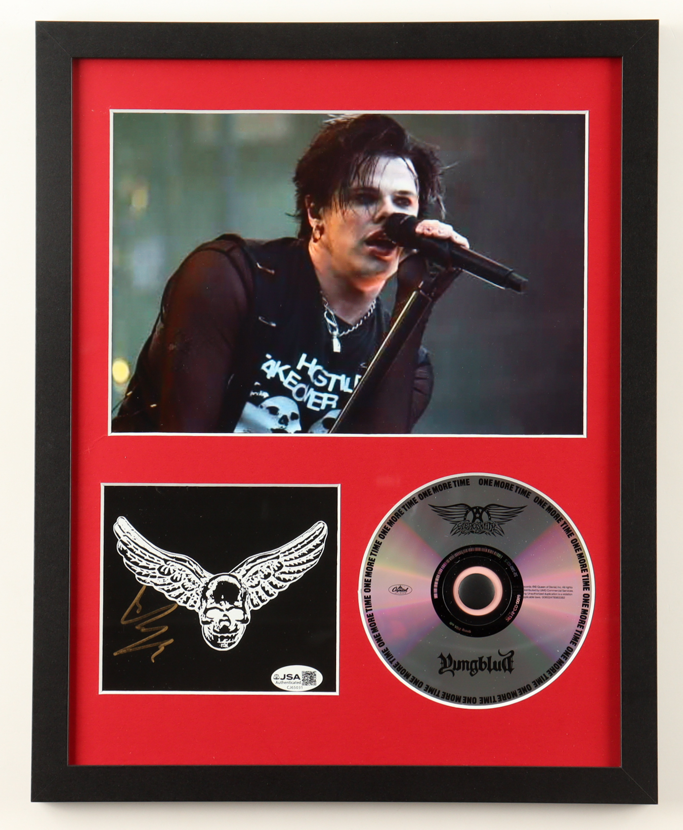 Custom frame measures approximately 12" x 15" in size. Features a "One More Time" CD insert that has been hand-signed by Yungblud and includes the disc as shown. Please note, there is minor scuffing throughout the frame.