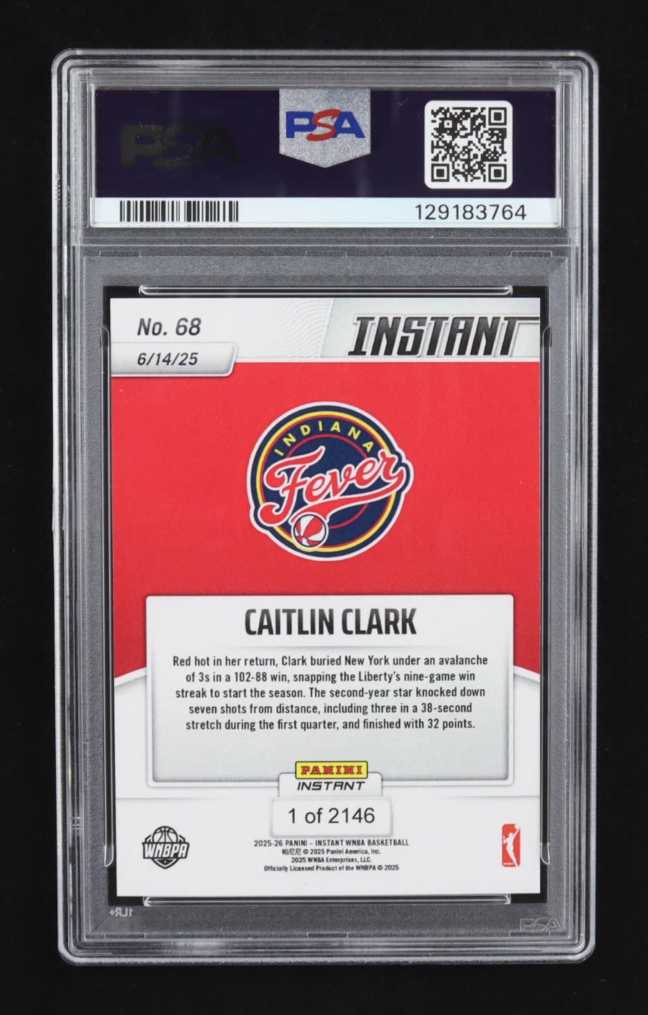 Caitlin Clark 2025 Panini Instant WNBA #68 (PSA 9)
