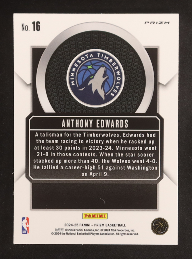 Anthony Edwards 2024-25 Panini Prizm Talismen Prizms Silver #16