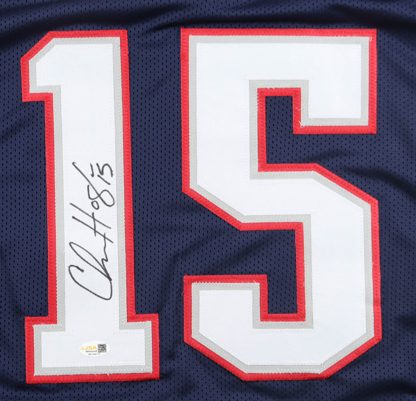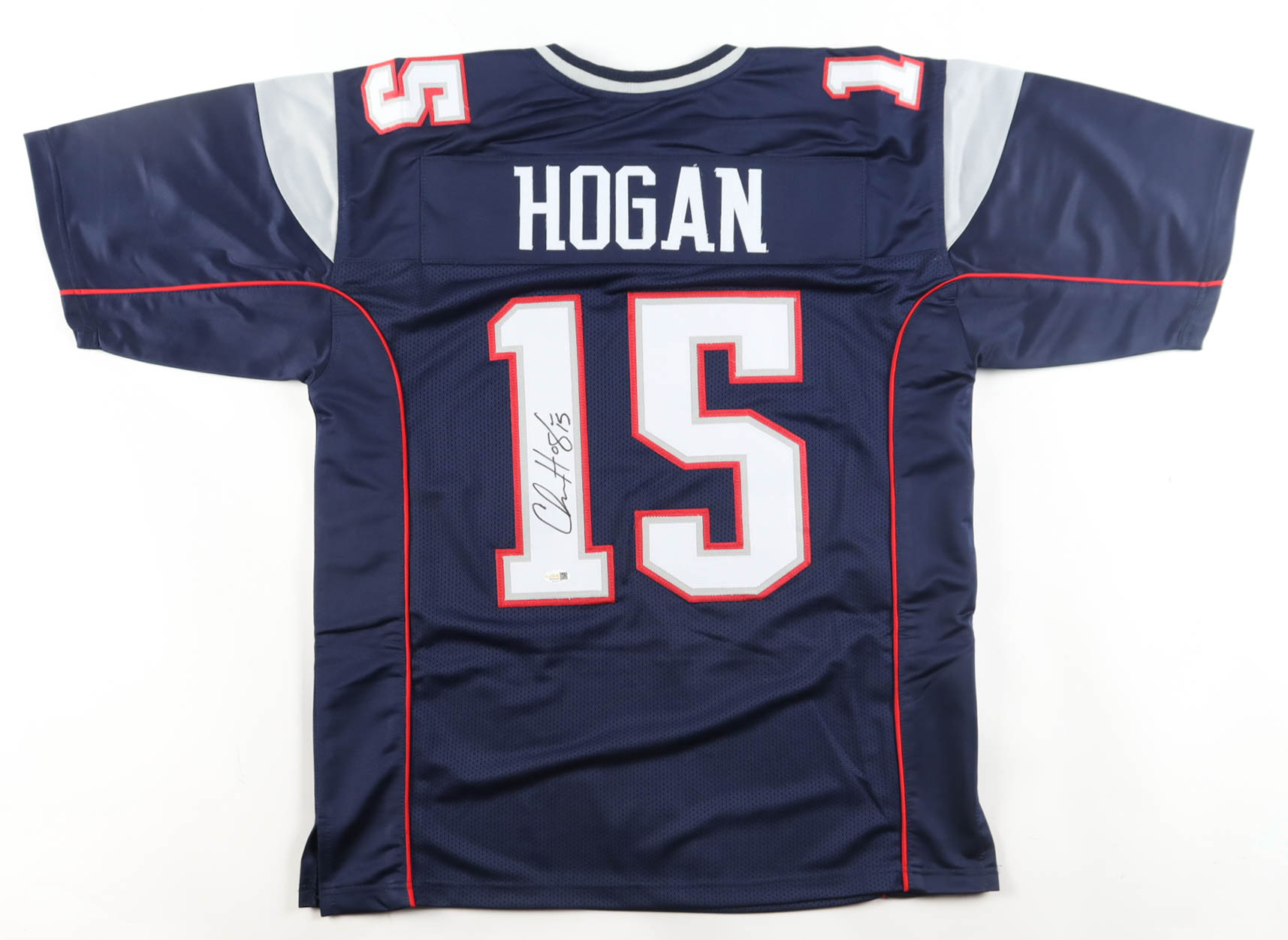 Custom jersey with everything sewn on, size XL. Hand-signed by Chris Hogan.