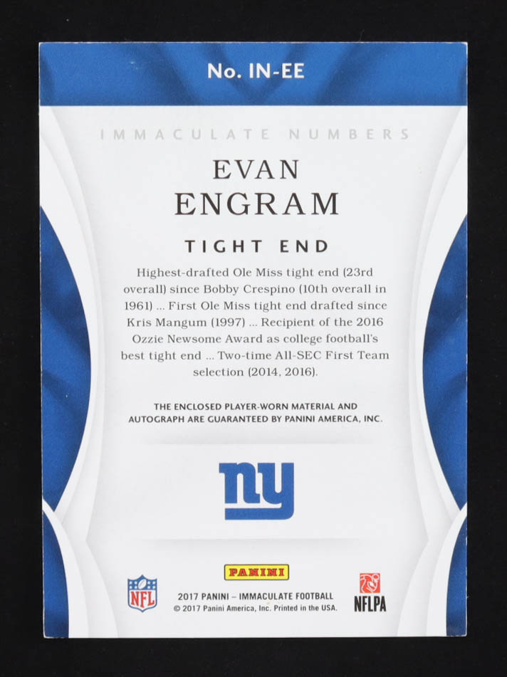 Evan Engram 2017 Immaculate Collection Immaculate Numbers Rookie Patch Autographs #24 #75/88 RC