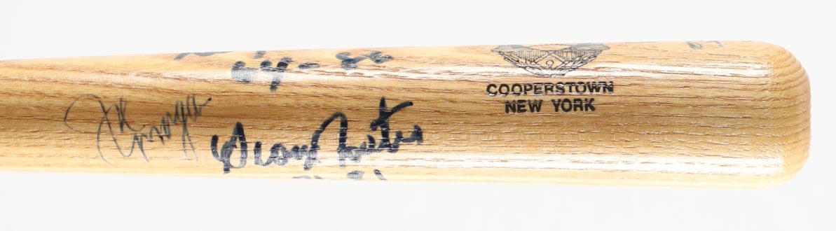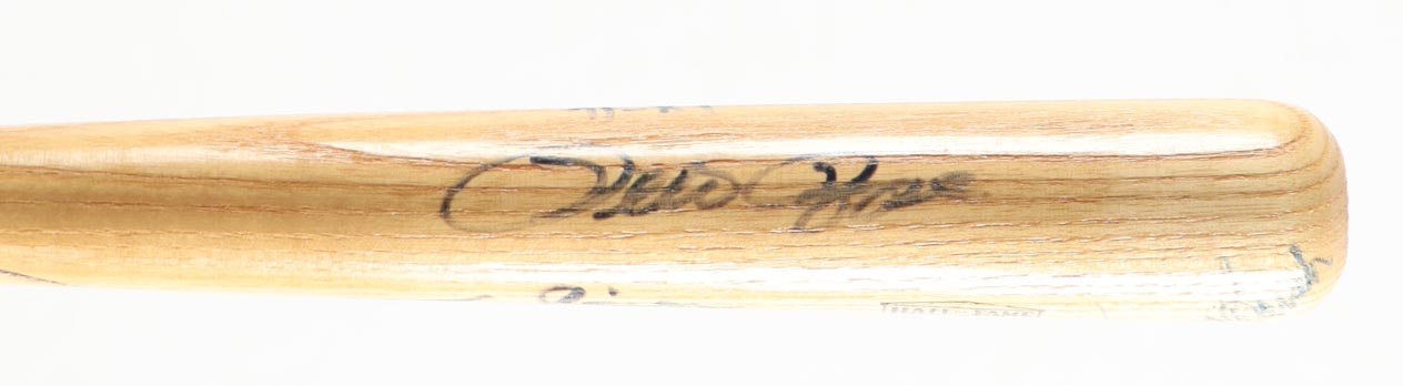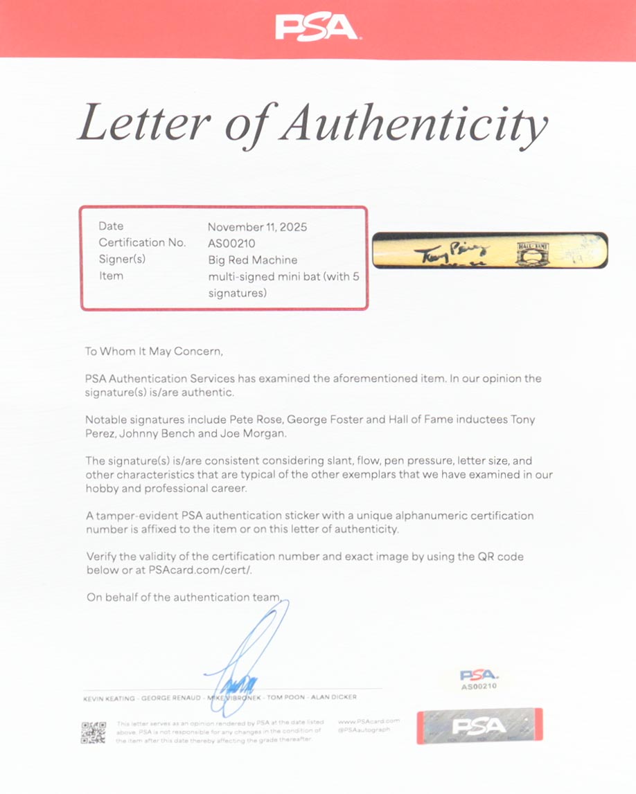 Louisville Slugger miniature baseball bat has been hand-signed by (5) with Pete Rose, George Foster, Tony Perez, Johnny Bench and Joe Morgan.
