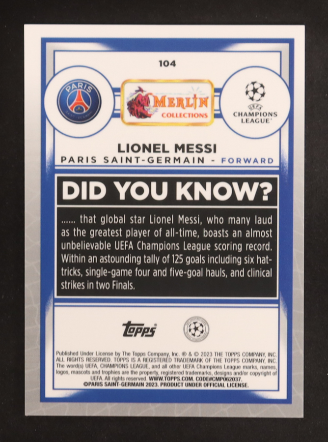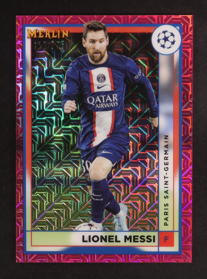 Lionel Messi 2022-23 Topps Merlin UEFA Pink Mojo Refractors #104 #153/275