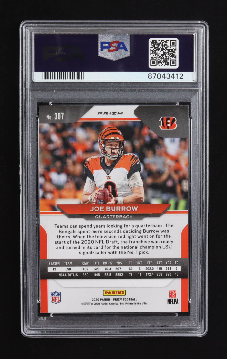 Joe Burrow Signed 2020 Panini Prizm Orange Disco #307 RC (PSA 9 | Autograph Graded PSA 10)