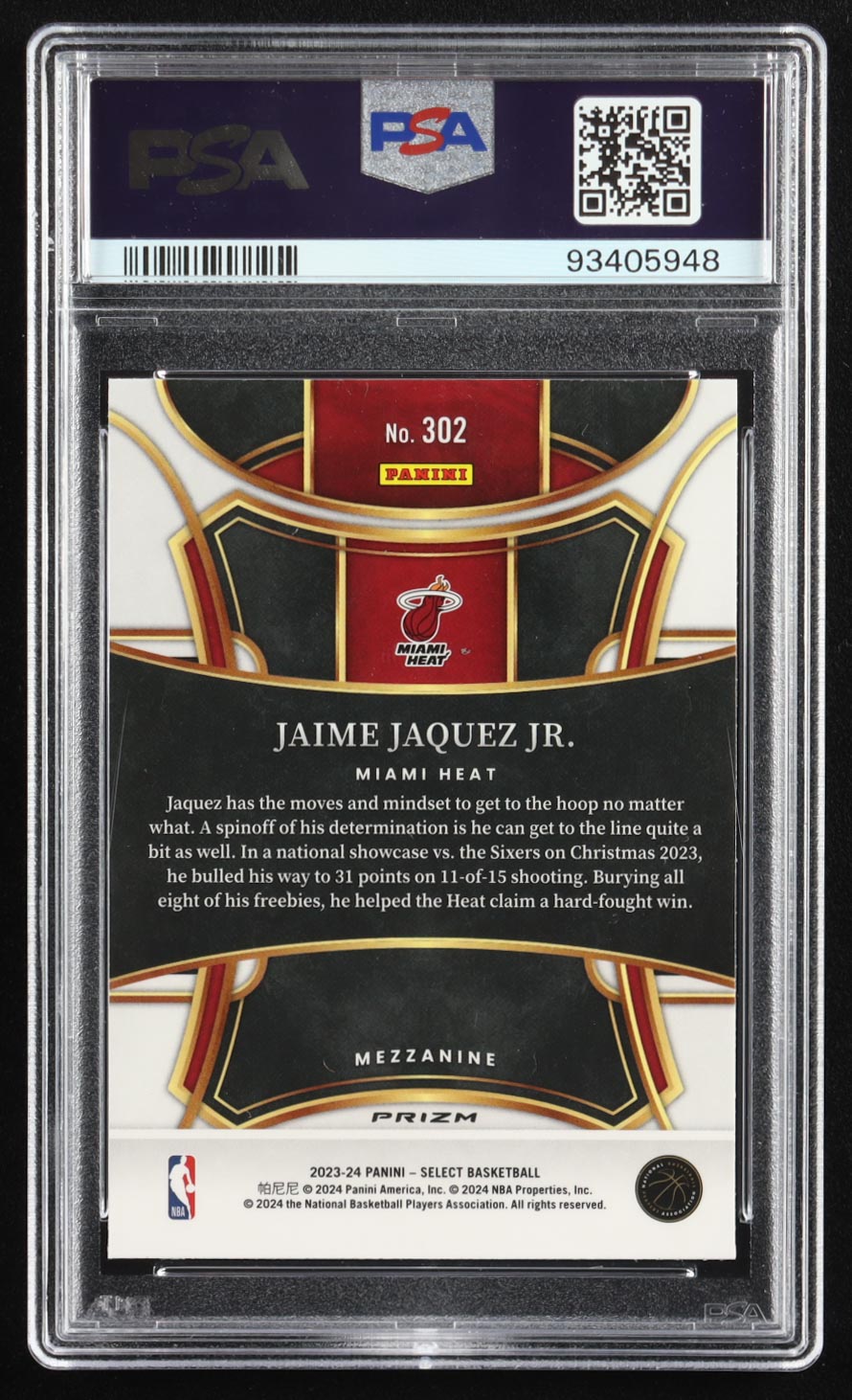 Jaime Jaquez Jr. 2023-24 Select Prizms Blue #302 RC (PSA 10)