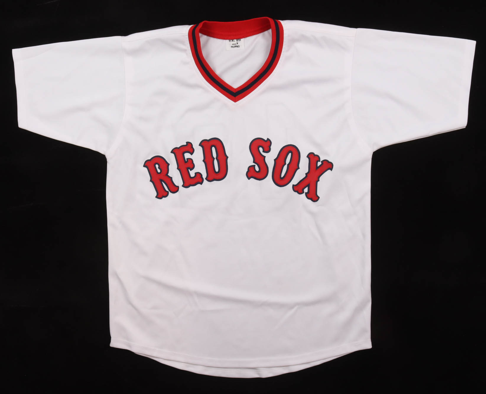 Custom jersey with everything sewn on, size XL. Hand-signed and inscribed by Fred Lynn (Boston Red Sox).