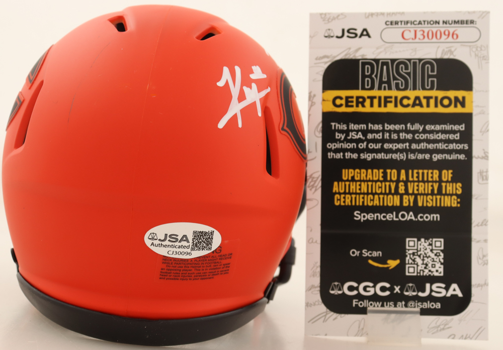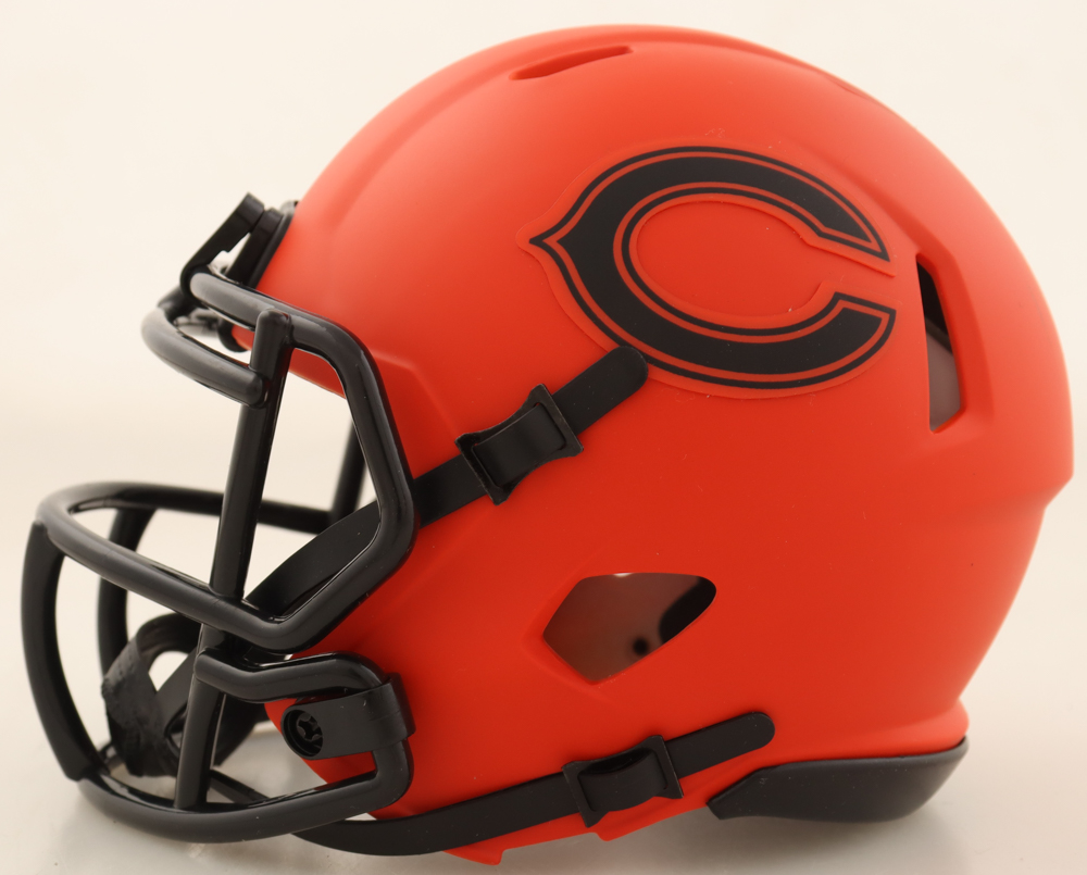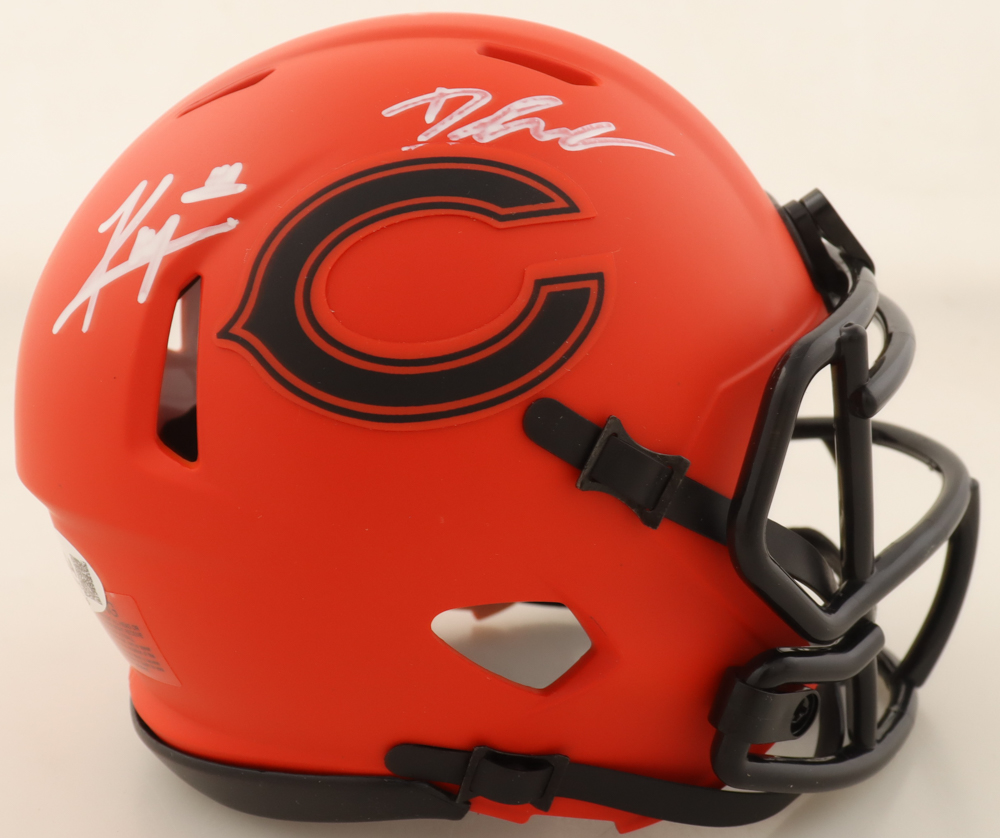 Riddell Chicago Bears Rave Alternate Speed Mini Helmet. Hand-signed by Kyle Monangai and D'Andre Swift.