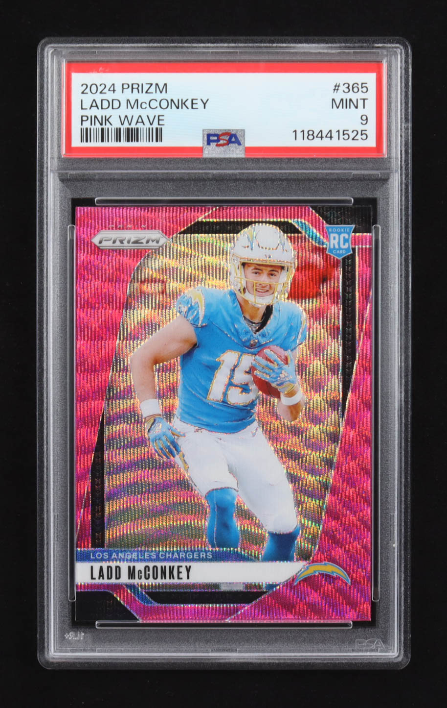 Ladd McConkey 2024 Panini Prizm Prizms Pink Wave #365 RC (PSA 9)