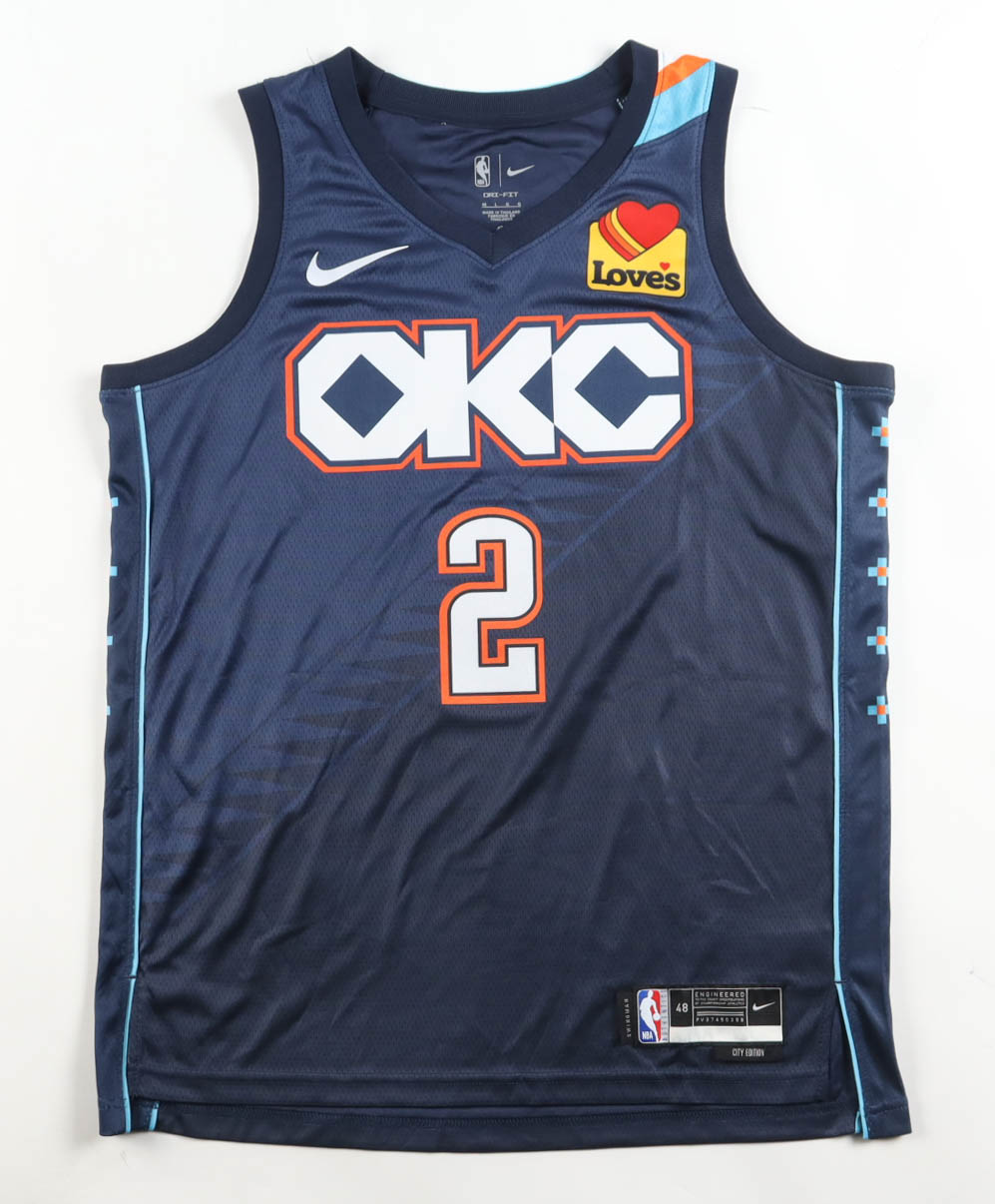 Nike authentic jersey with everything pressed on, size 48. Hand-signed by Shai Gilgeous-Alexander (Oklahoma City Thunder).