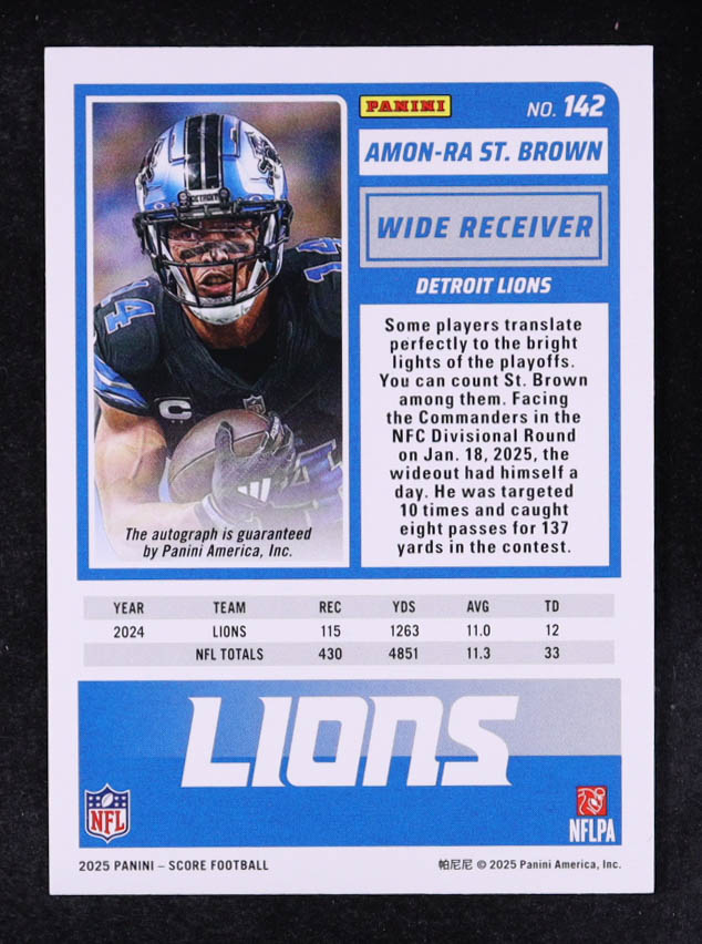 Amon-Ra St. Brown 2025 Score Signatures Gold Zone #142 #01/50