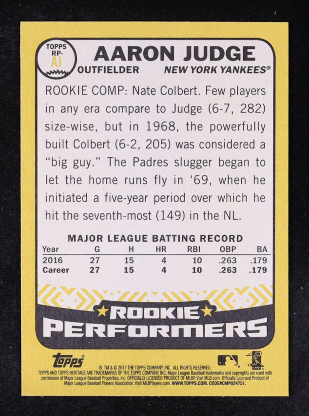 Aaron Judge 2017 Topps Heritage Rookie Performers #RPAJ