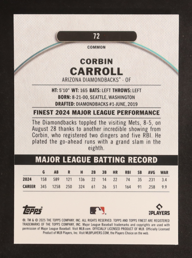Corbin Carroll 2025 Finest Checkerboard Refractors #72