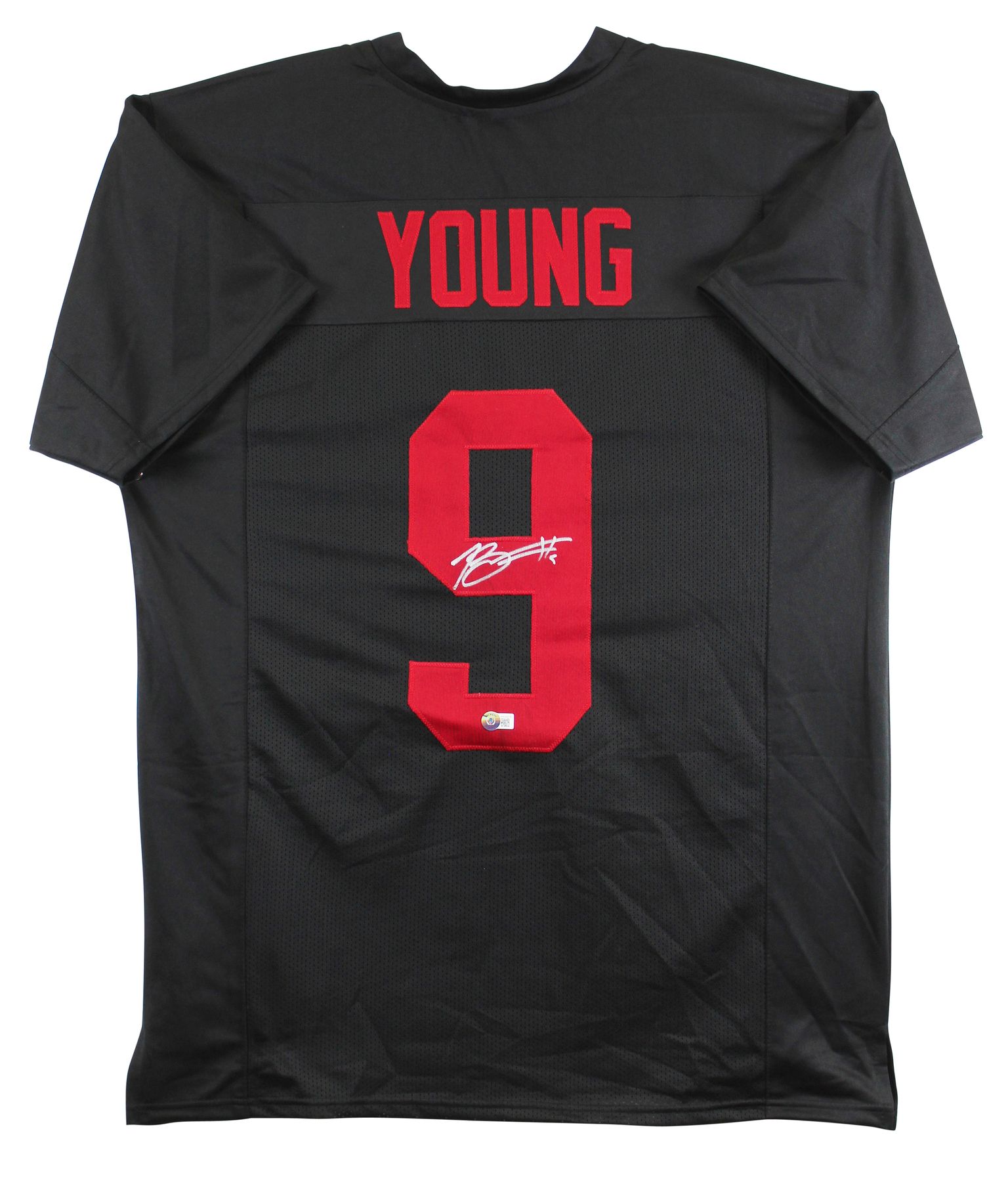 Custom jersey. Everything sewn on, size XL. Hand-signed by Bryce Young.