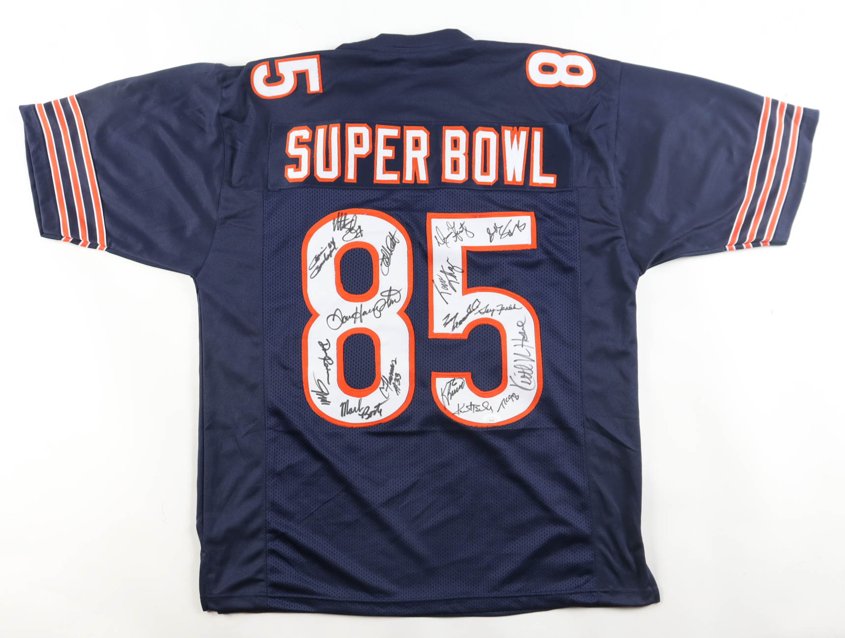 1985 Bears World Champions Jersey Team-Signed by (17) with Mike Singletary, Dan Hampton, Tom Thayer, Mark Bortz (JSA)