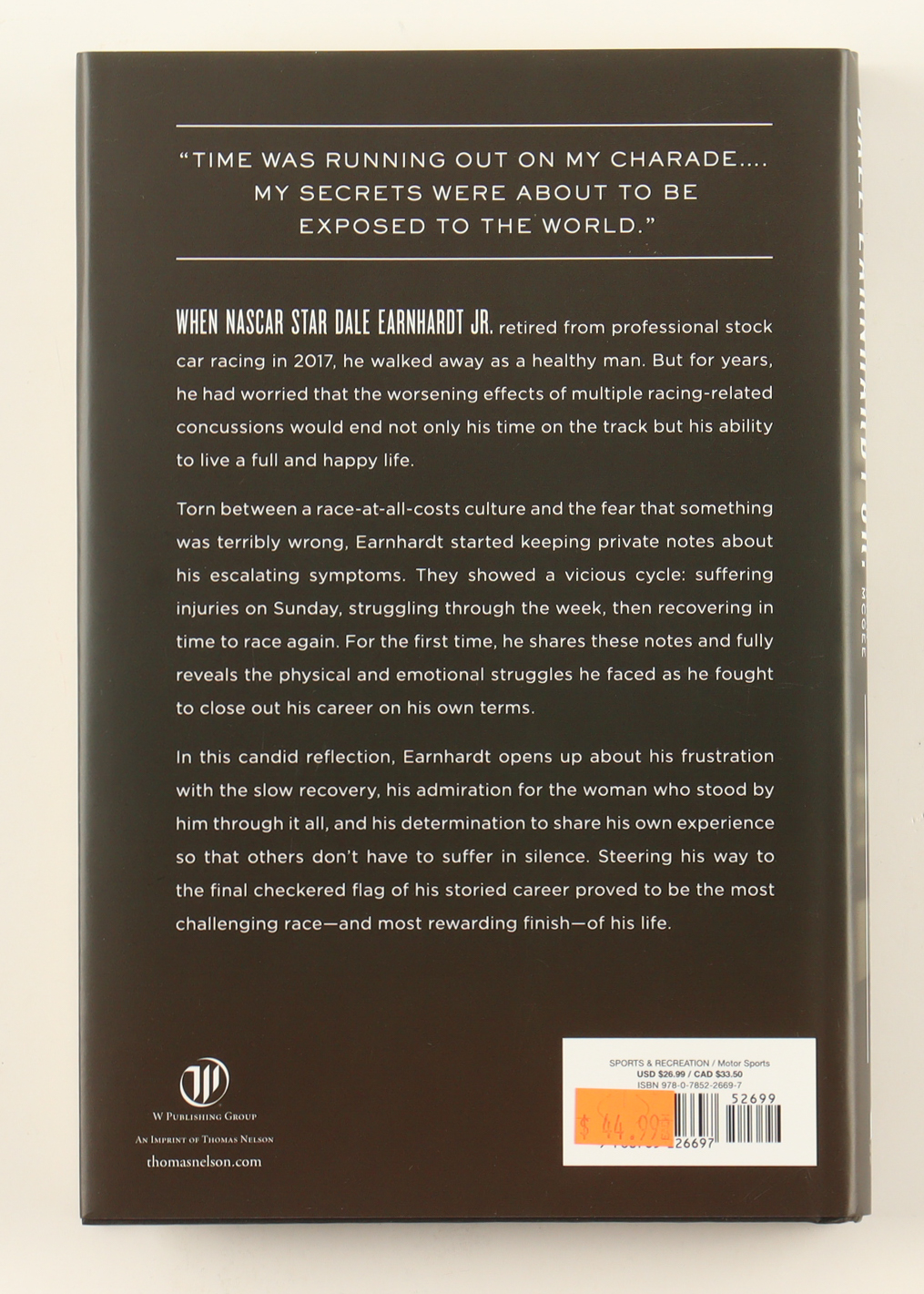 Hardcover book has been hand-signed on an inside page by Dale Earnhardt. Jr. (HOF).