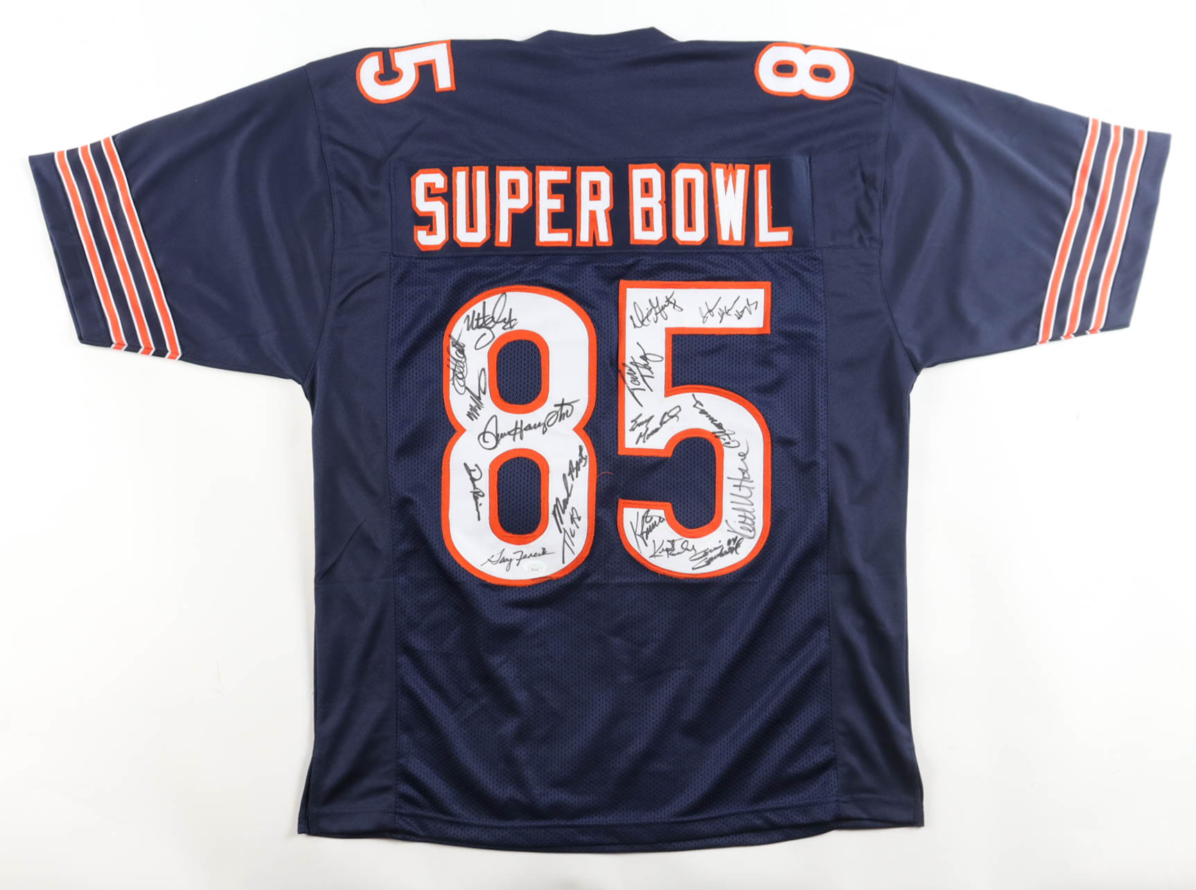 1985 Bears World Champions Jersey Team-Signed by (17) with Mike Singletary, Dan Hampton, Tom Thayer, Mark Bortz (JSA)