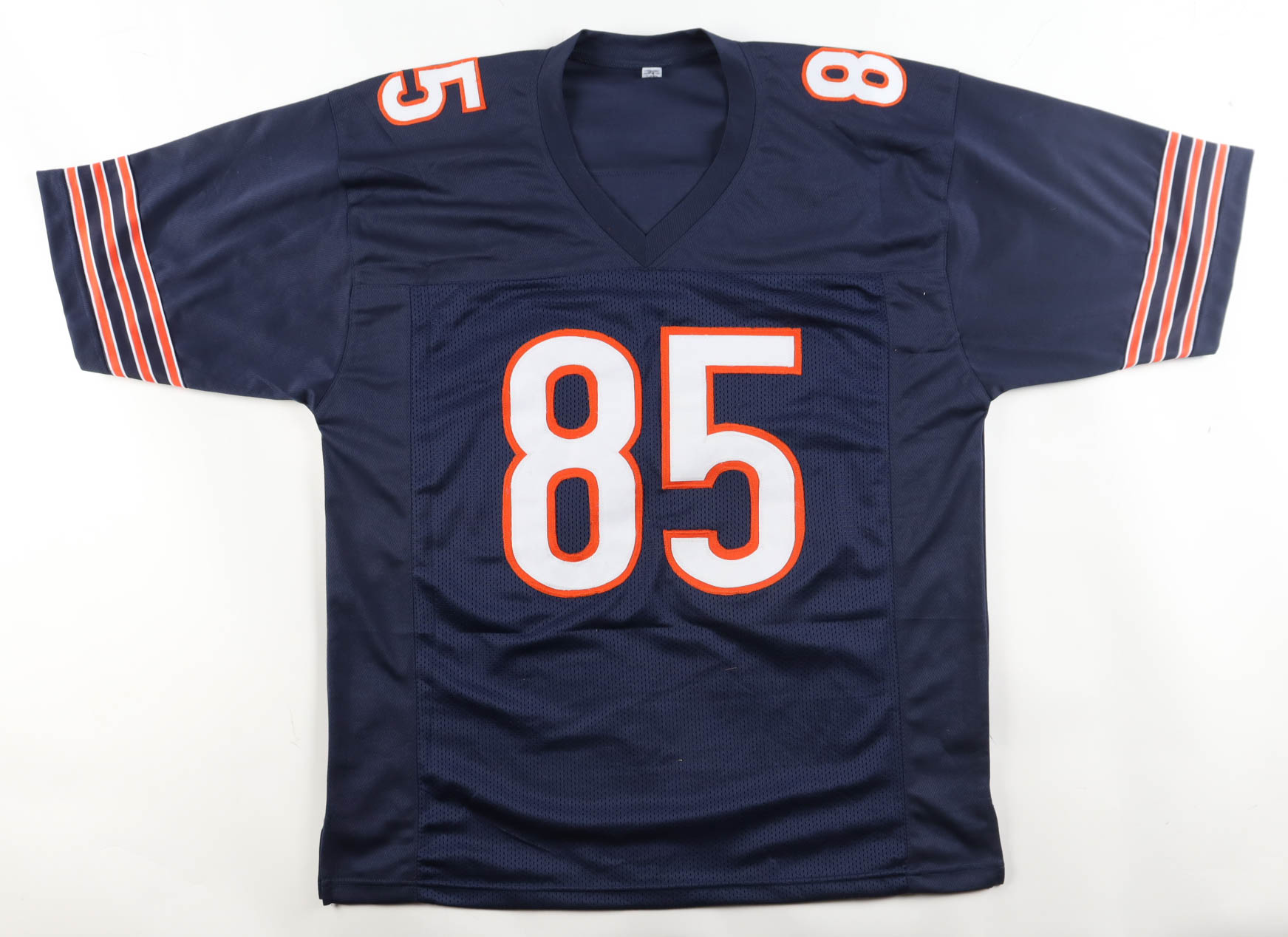 Custom jersey with everything sewn on, size XL. Hand-signed by (12) with Mike Singletary (HOF), Dan Hampton (HOF), Tom Thayer, Mark Bortz, Emery Moorehead, Dan Rains, Matt Suhey, Gary Fencik, Tyrone Keys, Dennis Gentry, Calvin Thomas, Stefan Humphries, Keith Van Horne, Kurt Becker, Kevin Butler, Willie Gault, & Brian Baschangel.