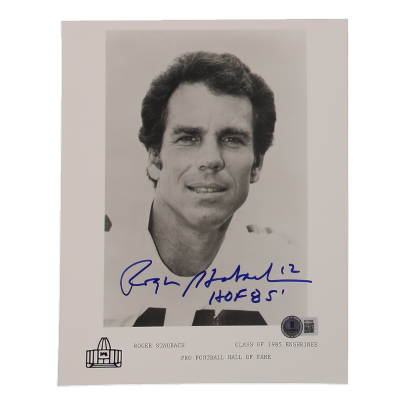 Photo measures approximately 8" x 10" in size. Hand-signed and inscribed by Roger Staubach (Dallas Cowboys, HOF).