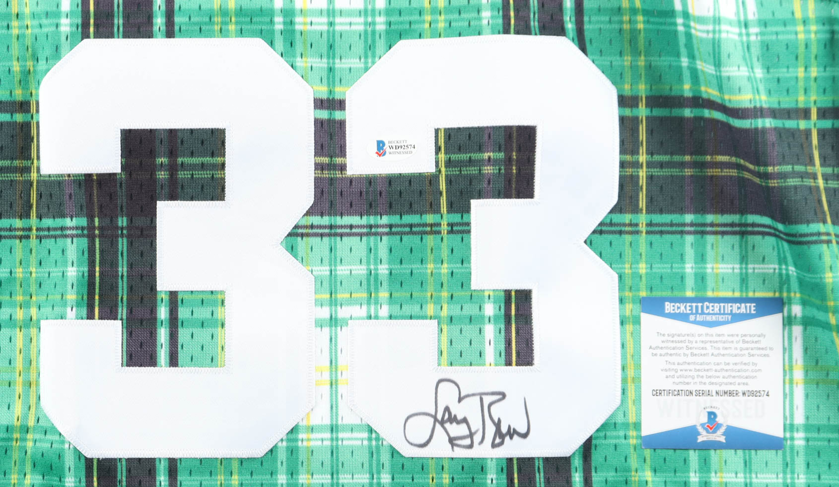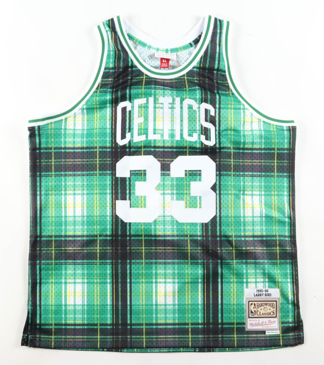 Mitchell & Ness authentic jersey with everything pressed on, size XL. Hand-signed by Larry Bird (Boston Celtics, HOF).