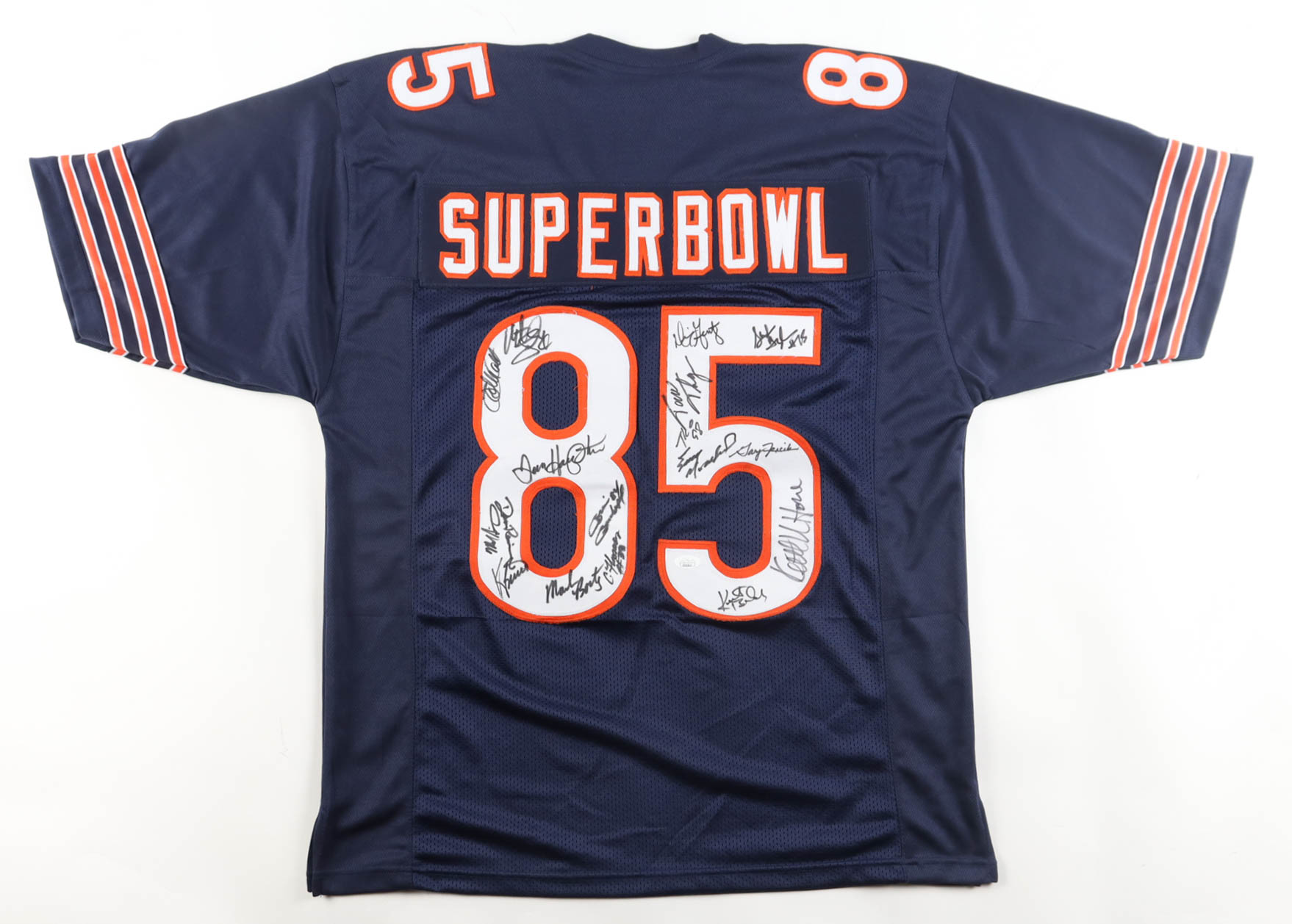 1985 Bears World Champions Jersey Team-Signed by (17) with Mike Singletary, Dan Hampton, Tom Thayer, Mark Bortz (JSA)