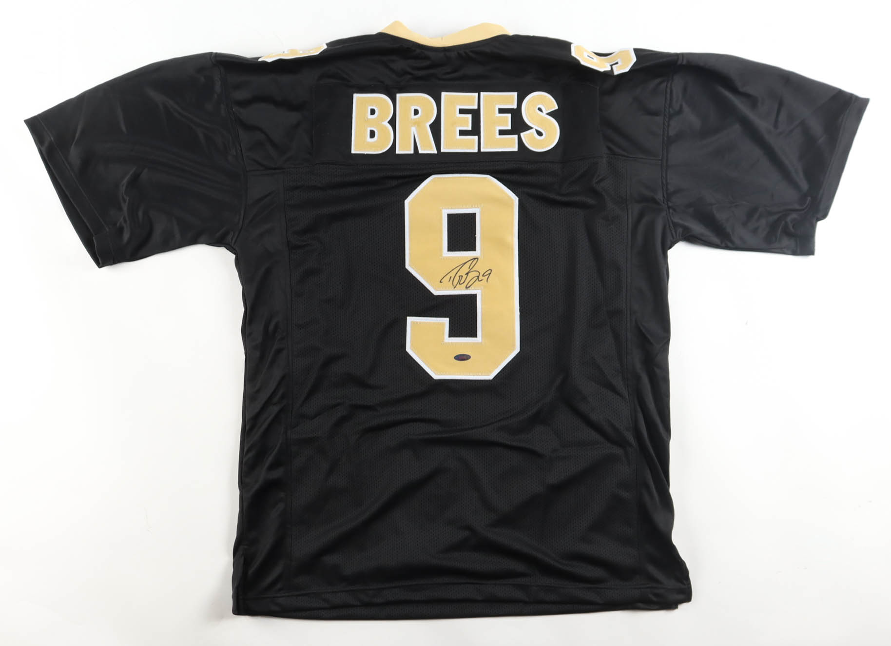 Custom jersey with everything sewn on, size XL. Hand-signed by Drew Brees.