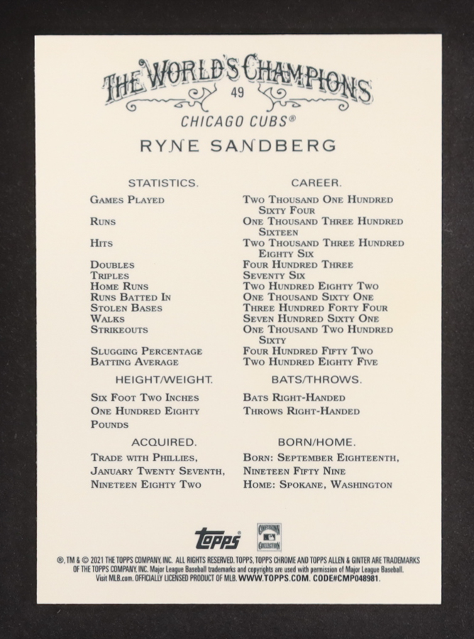 Ryne Sandberg 2021 Topps Allen and Ginter Chrome #49