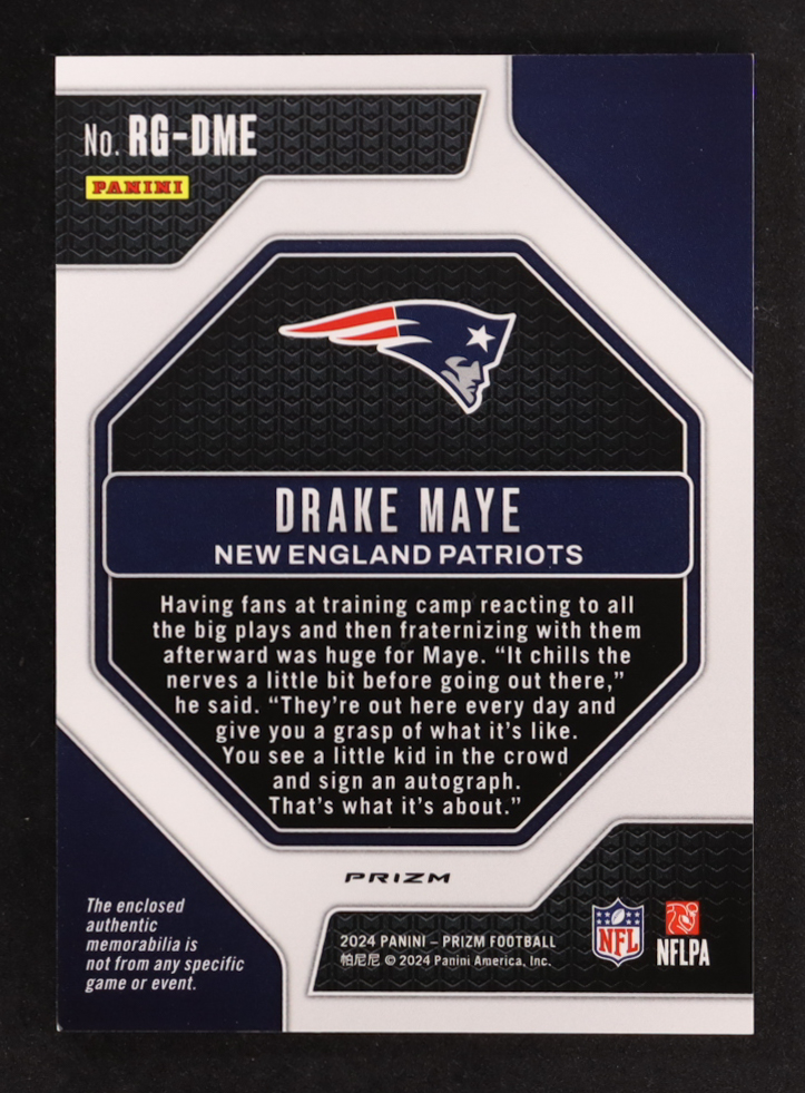 Drake Maye 2024 Panini Prizm Rookie Gear Neon Green Pulsar #6 RC