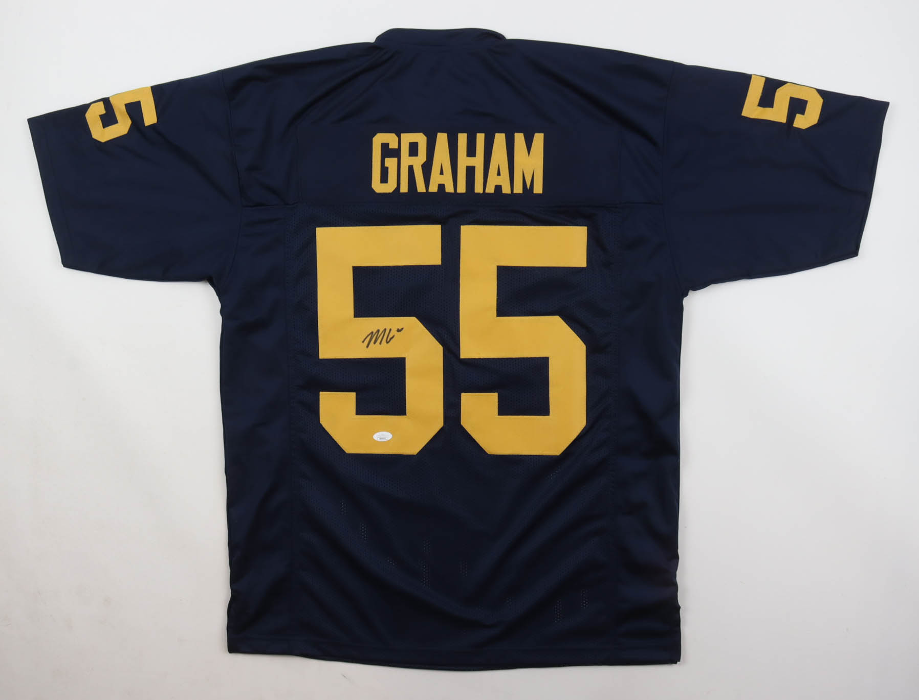 Custom jersey with everything sewn on, size XL. Hand-signed by Mason Graham. Please note, the signature has bled and glue is visible through the jersey numbers. See photos regarding the condition of the item.