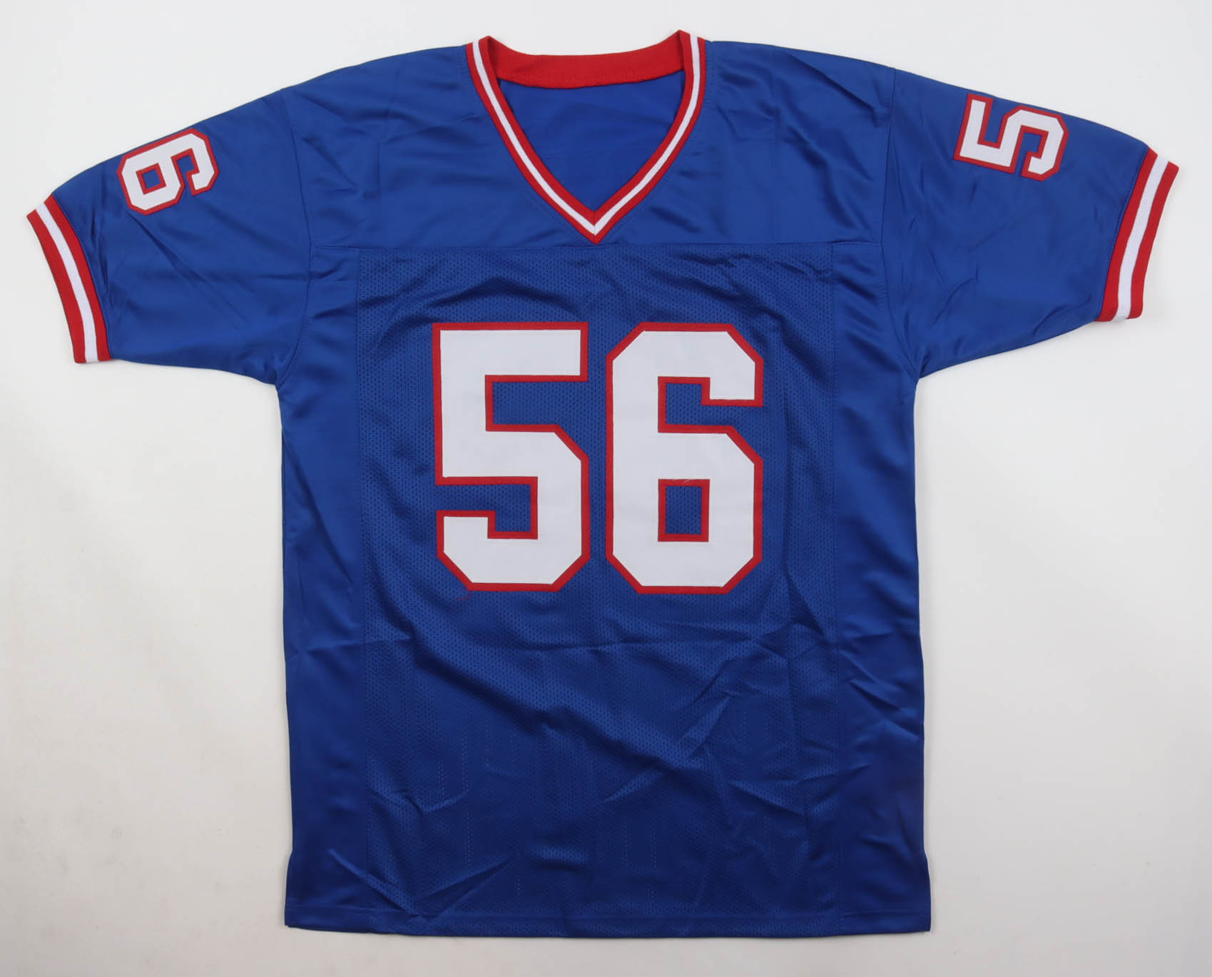 Custom jersey with everything sewn own, size XL. Hand-signed by Lawrence Taylor (HOF). Please note, the signature has bled.