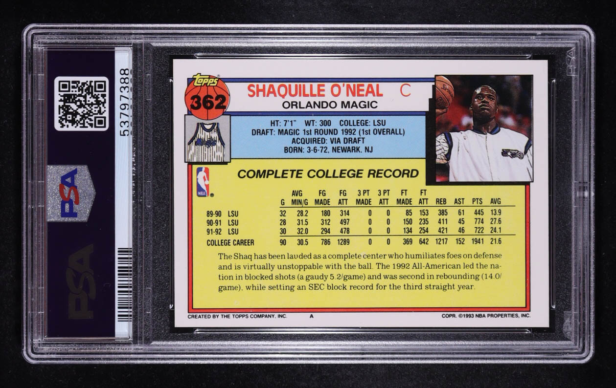 Shaquille O'Neal 1992-93 Topps #362 RC (PSA 9)