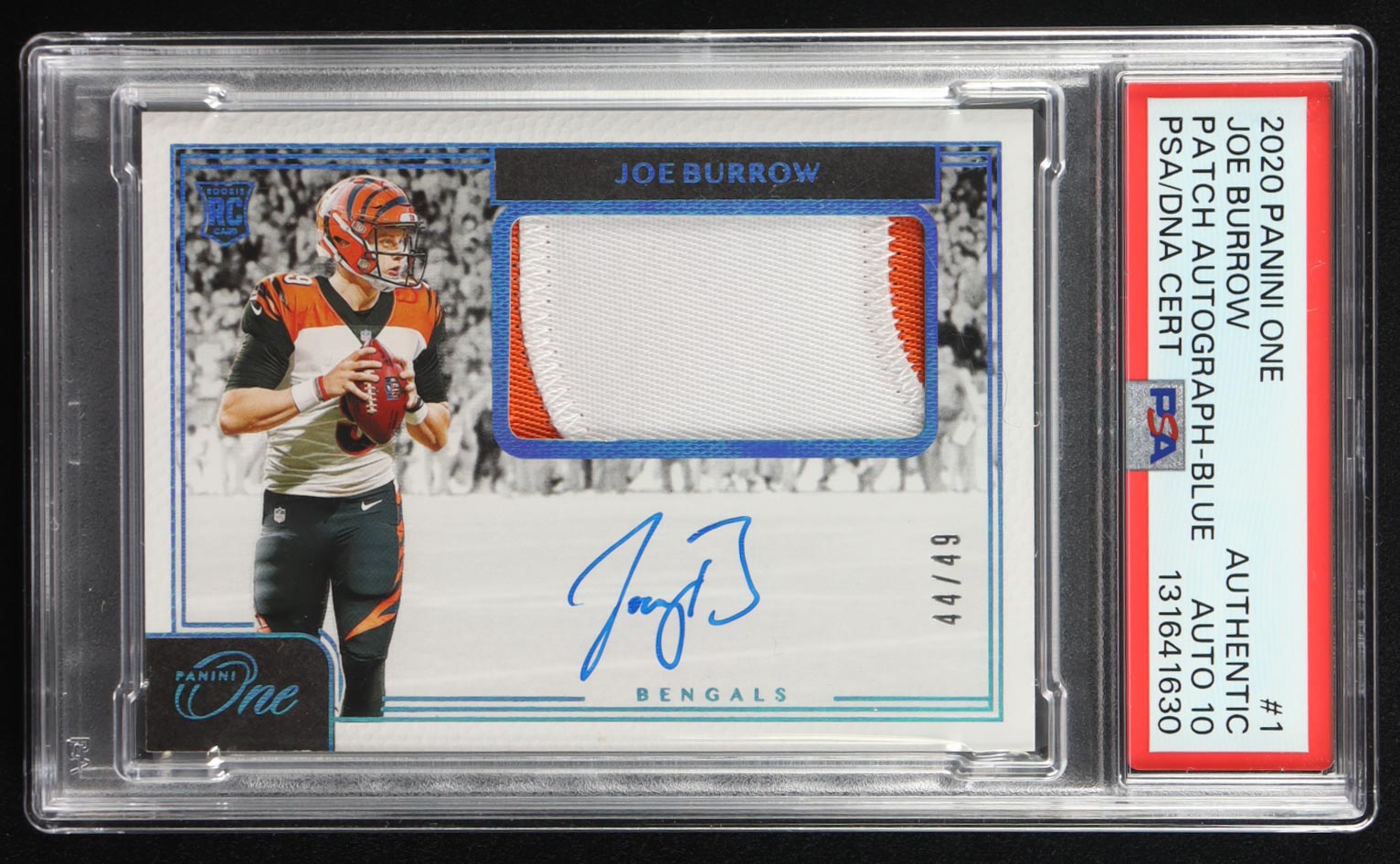 Joe Burrow 2020 Panini One Blue #1 Jersey Autograph RC #44/49 (PSA | Auto Grade 10)