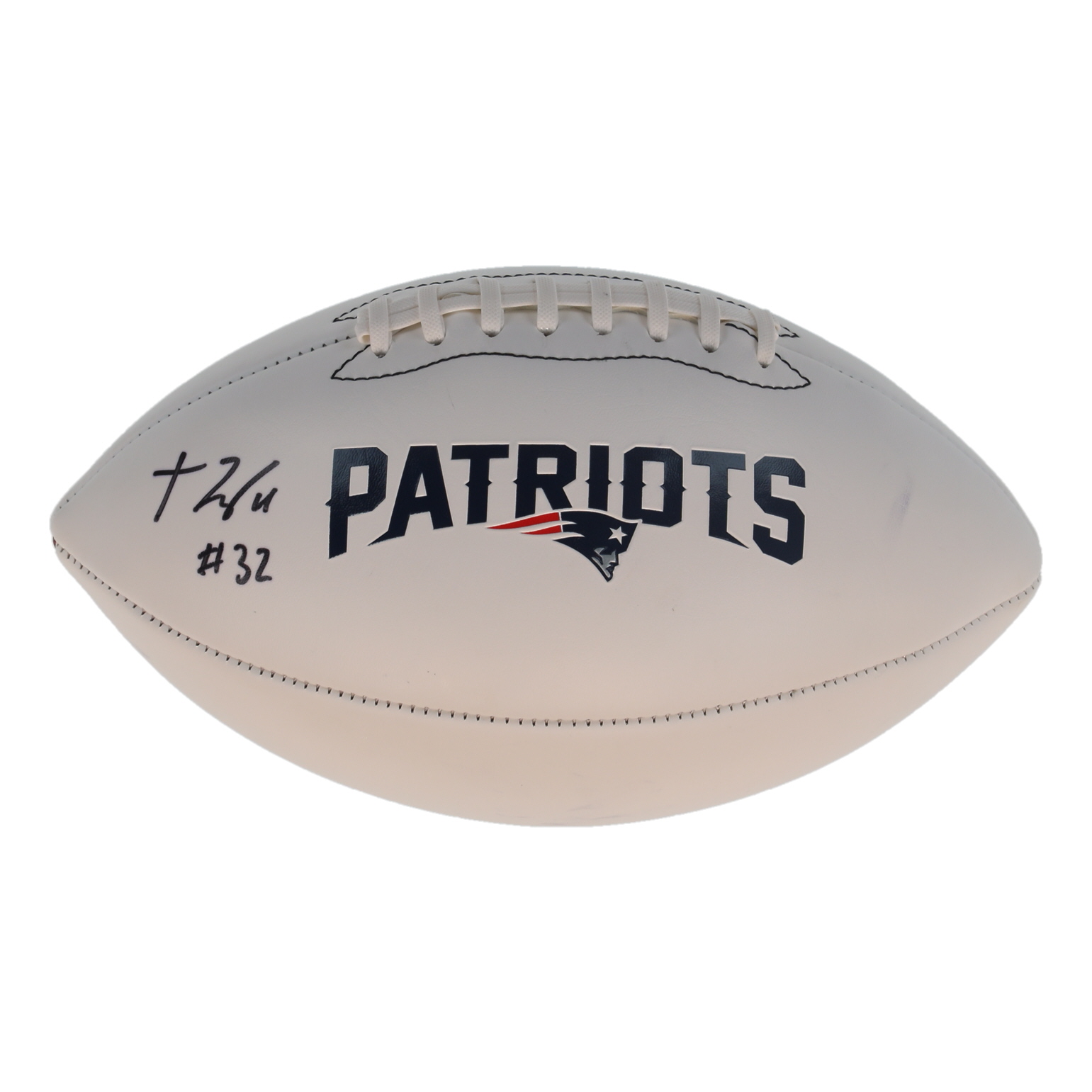 New England Patriots logo football has been hand-signed by TreVeyon Henderson.