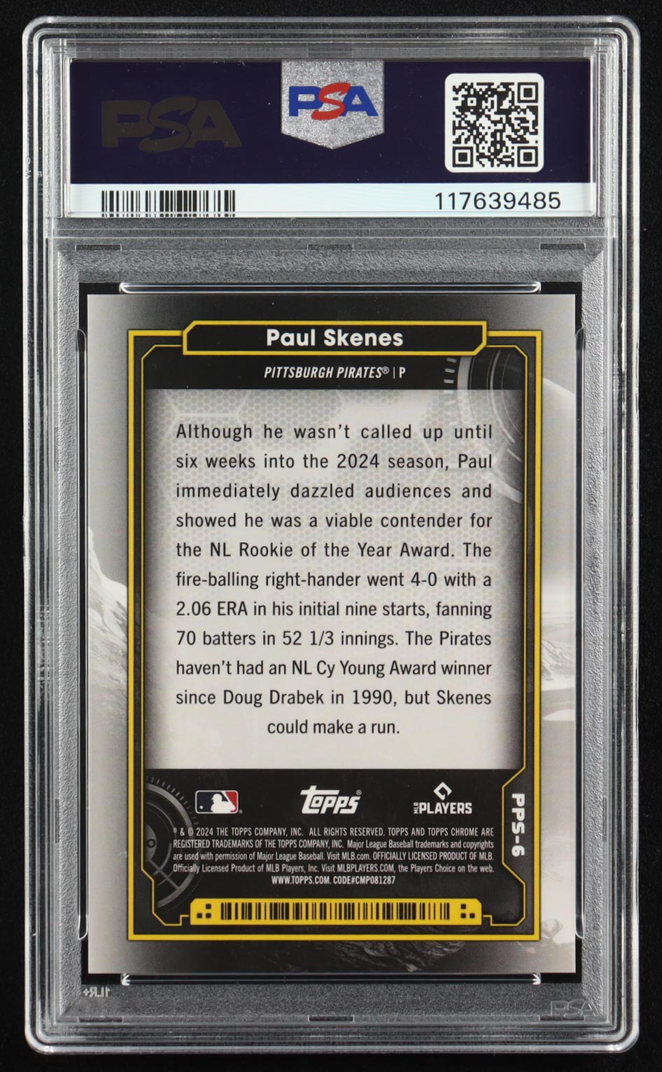 Paul Skenes 2024 Topps Cosmic Chrome Planetary Pursuit Sun #PPS6 RC (PSA 10)