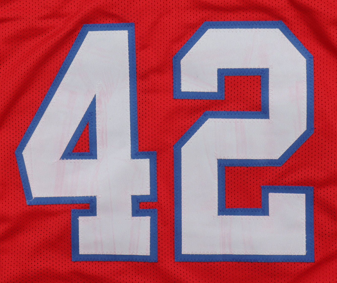Custom jersey with everything sewn on, size XL. Hand-signed and inscribed by Ronnie Lippett. Please note, the signature and inscription have bled as well as glue is visible though the jersey numbers.