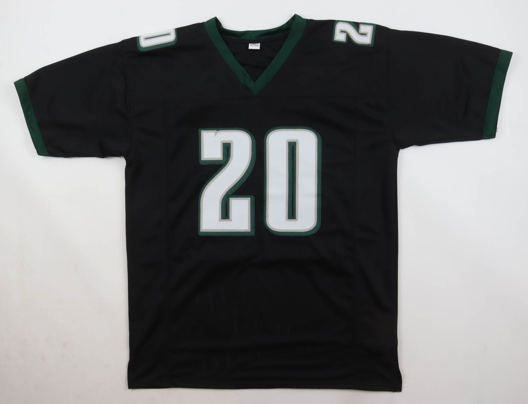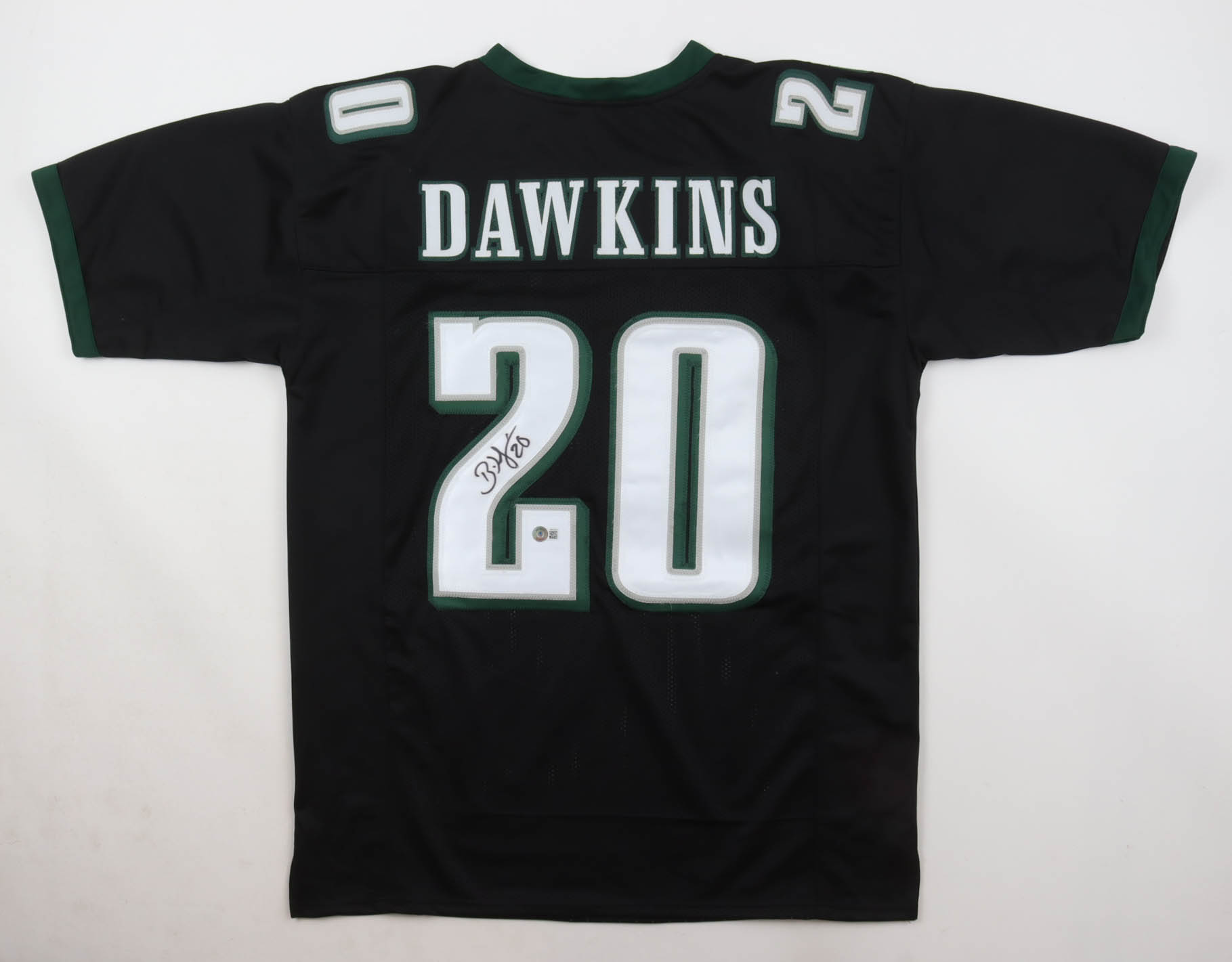 Custom jersey with everything sewn on, size XL. Hand-signed by Brian Dawkins.