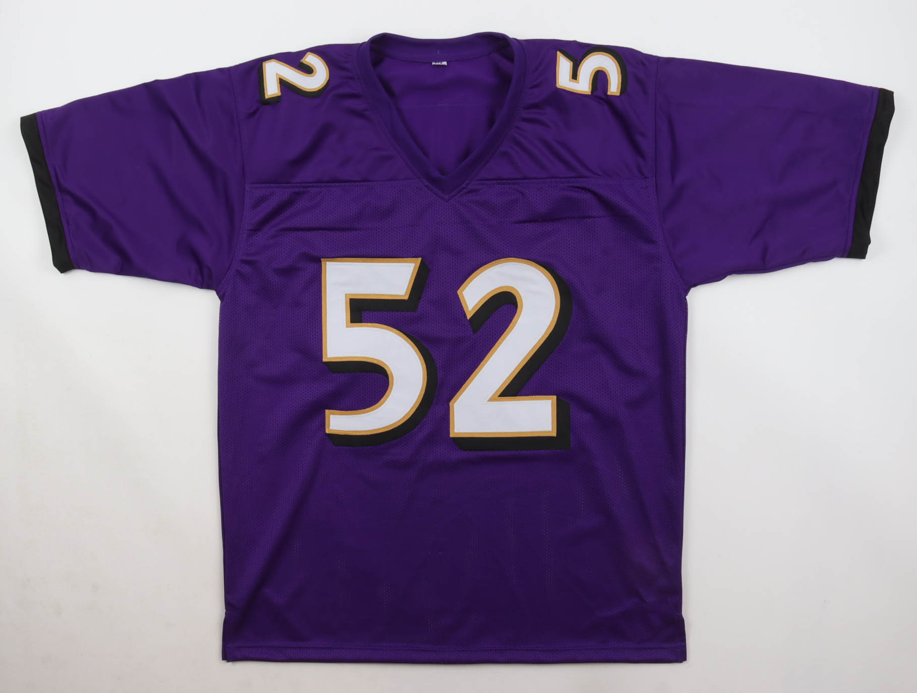 Custom jersey. Everything is sewn on, size XL. Hand-signed by Ray Lewis (HOF).