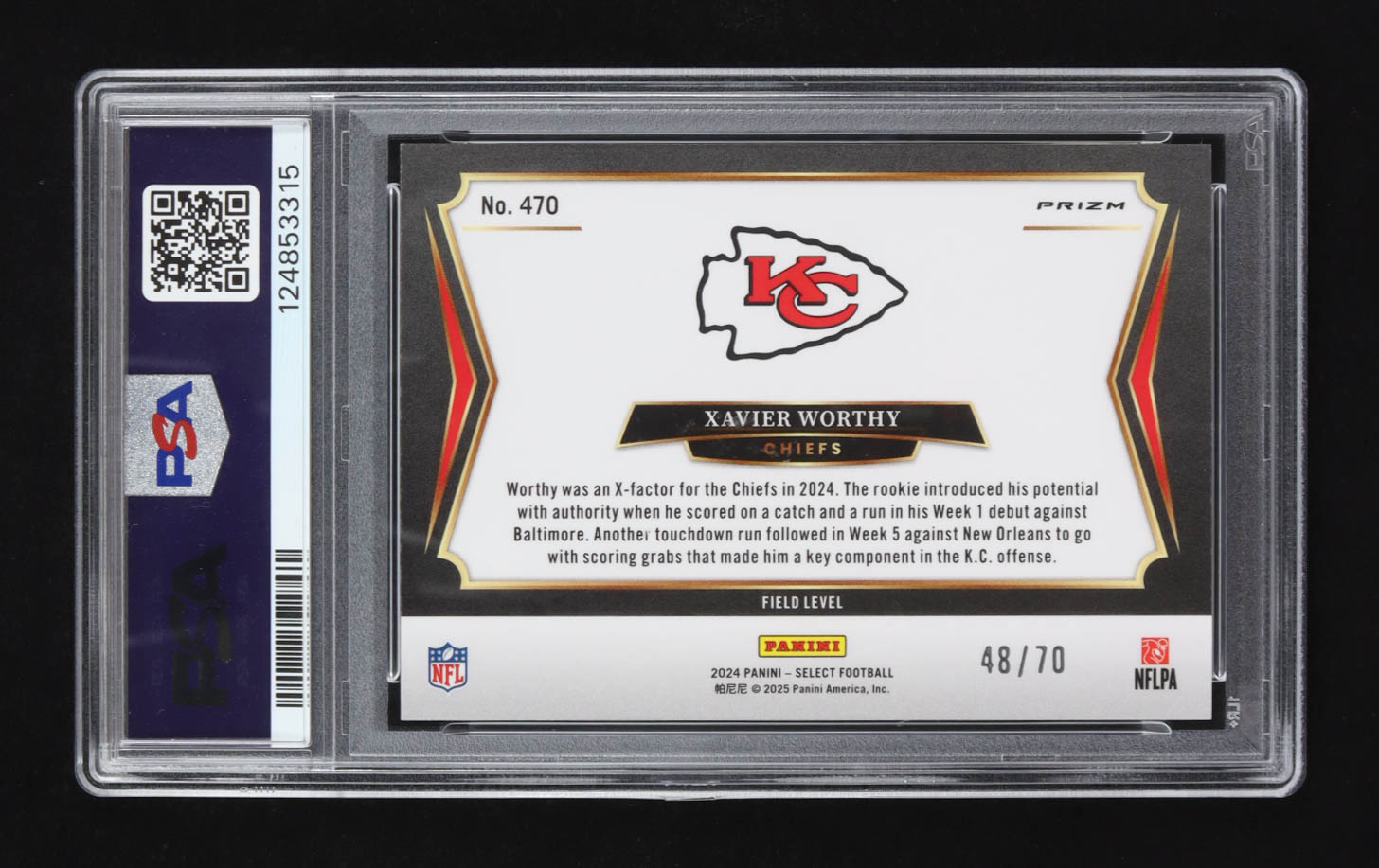 Xavier Worthy 2024 Panini Select Dragon Scale #470 RC #48/70 (PSA 9)