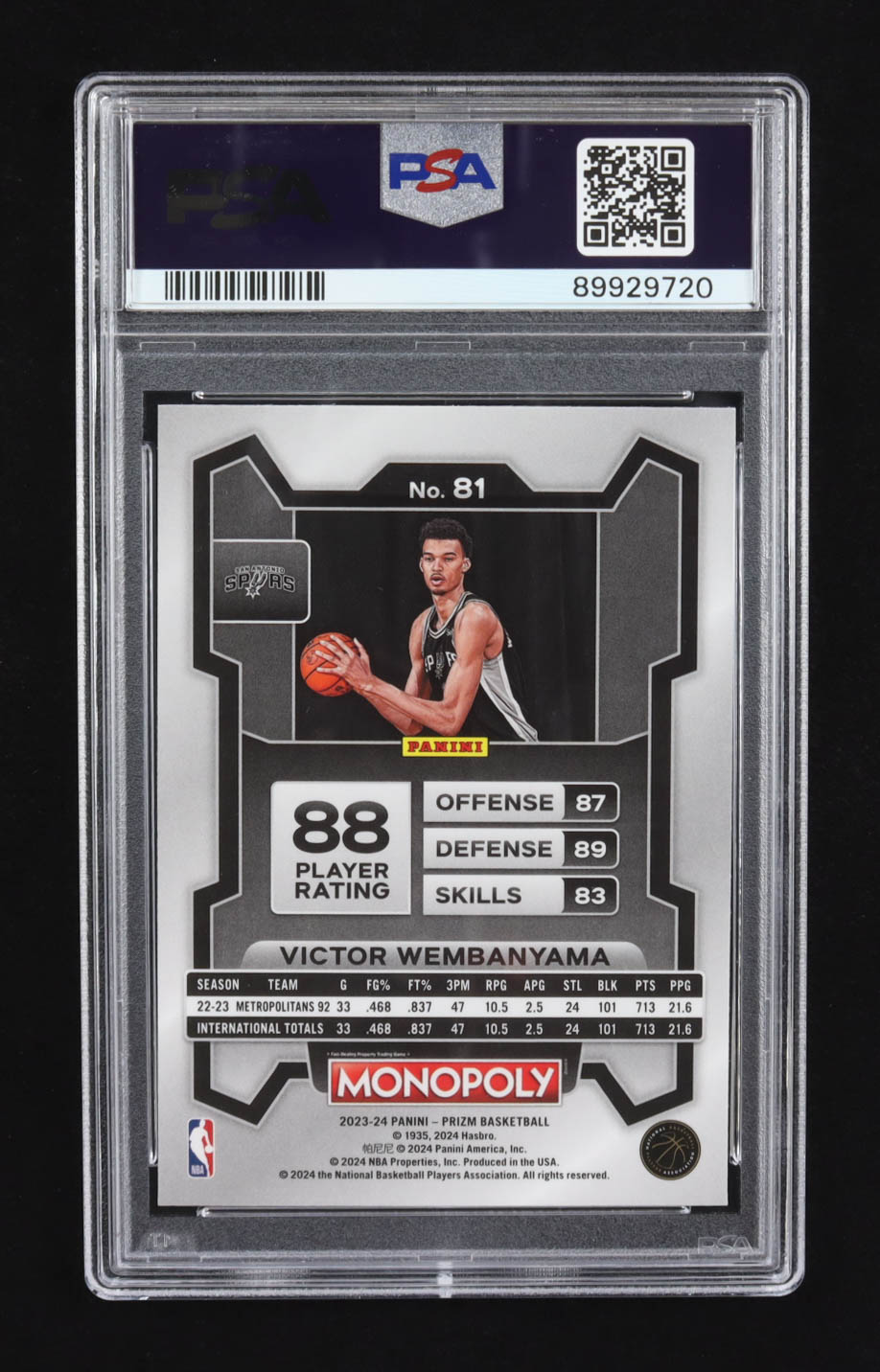 Victor Wembanyama 2023-24 Panini Monopoly #81 RC (PSA 10)