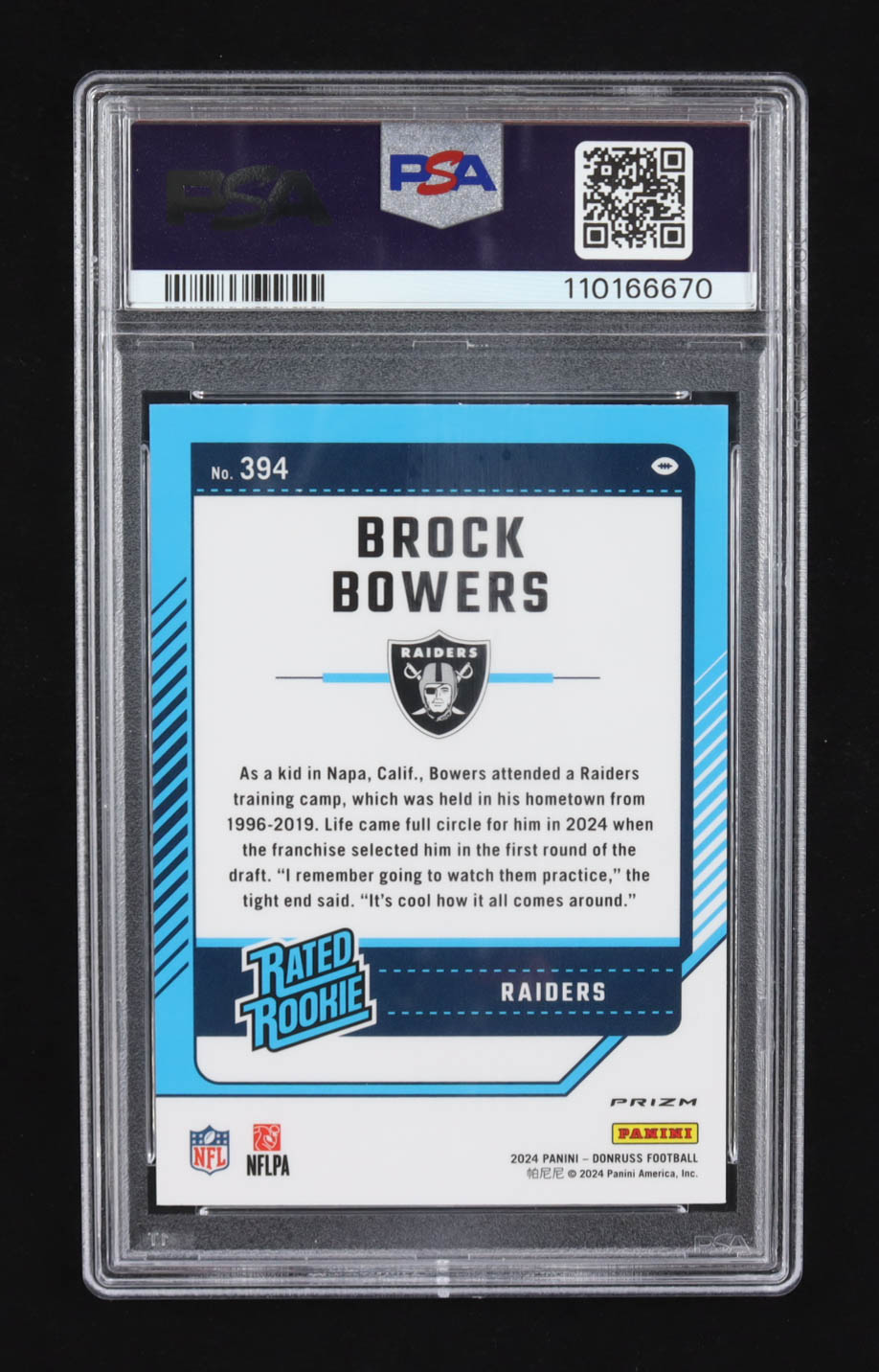 Brock Bowers 2024 Panini Donruss Optic Preview RR #394 RC (PSA 10)