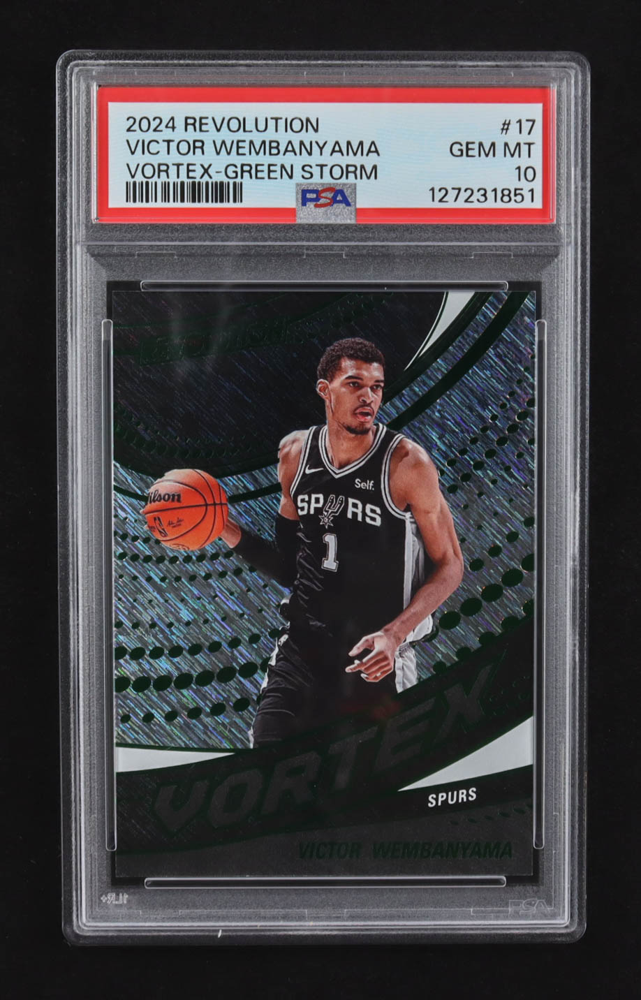 Victor Wembanyama 2024-25 Panini Revolution Vortex Green Storm #17 #37/99 (PSA 10)