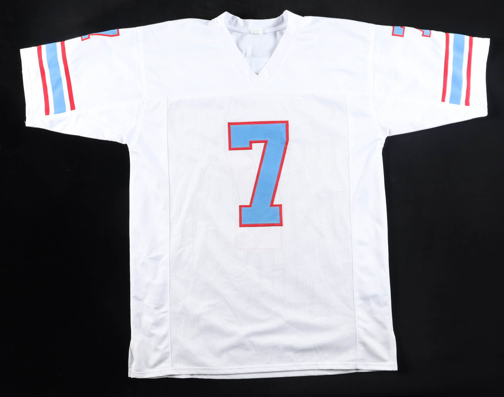 Custom jersey with everything sewn on, size XL. Hand-signed by Dan Pastorini (Houston Oilers).
