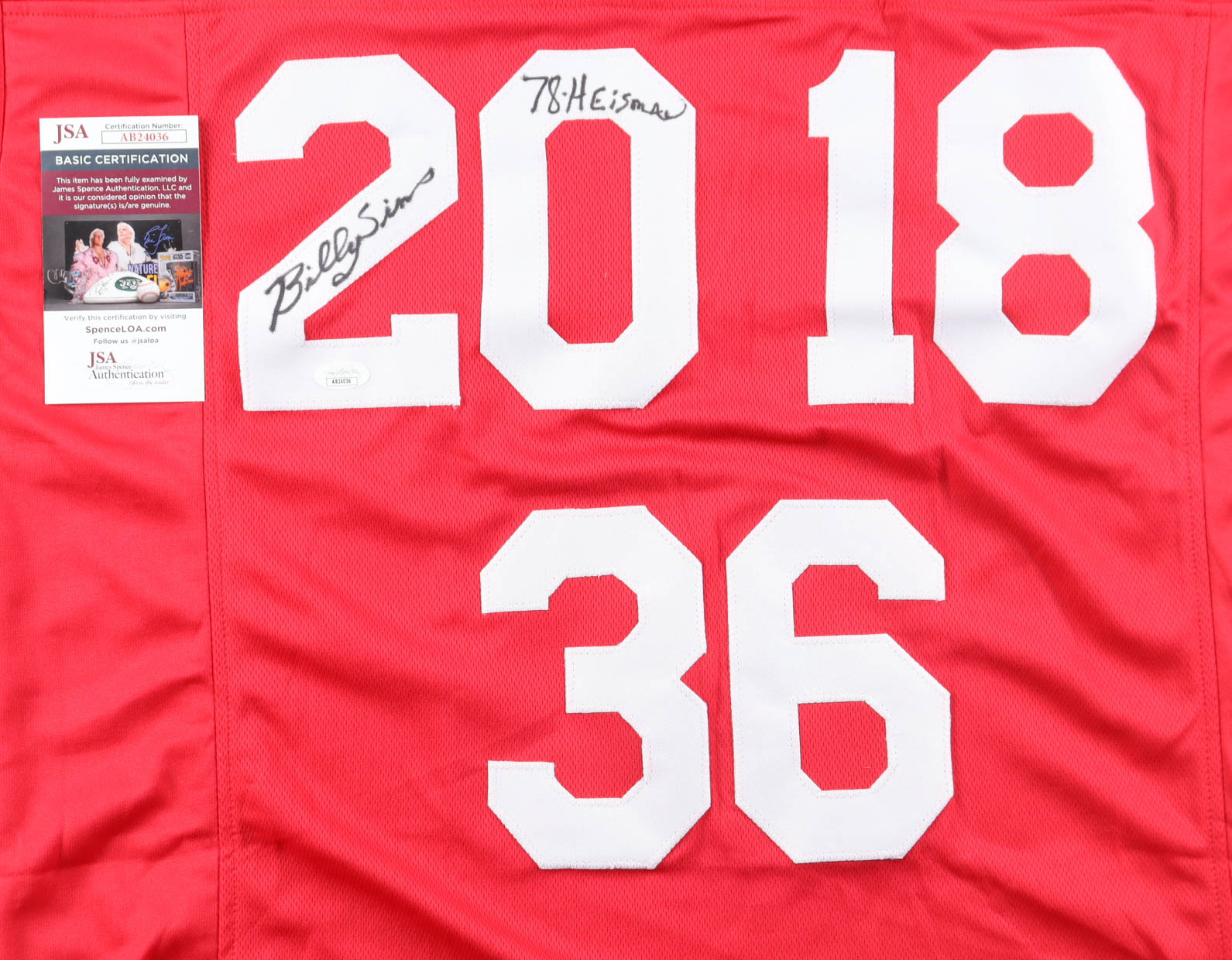 Billy Sims Signed Jersey Inscribed "78 Heisman" (JSA)