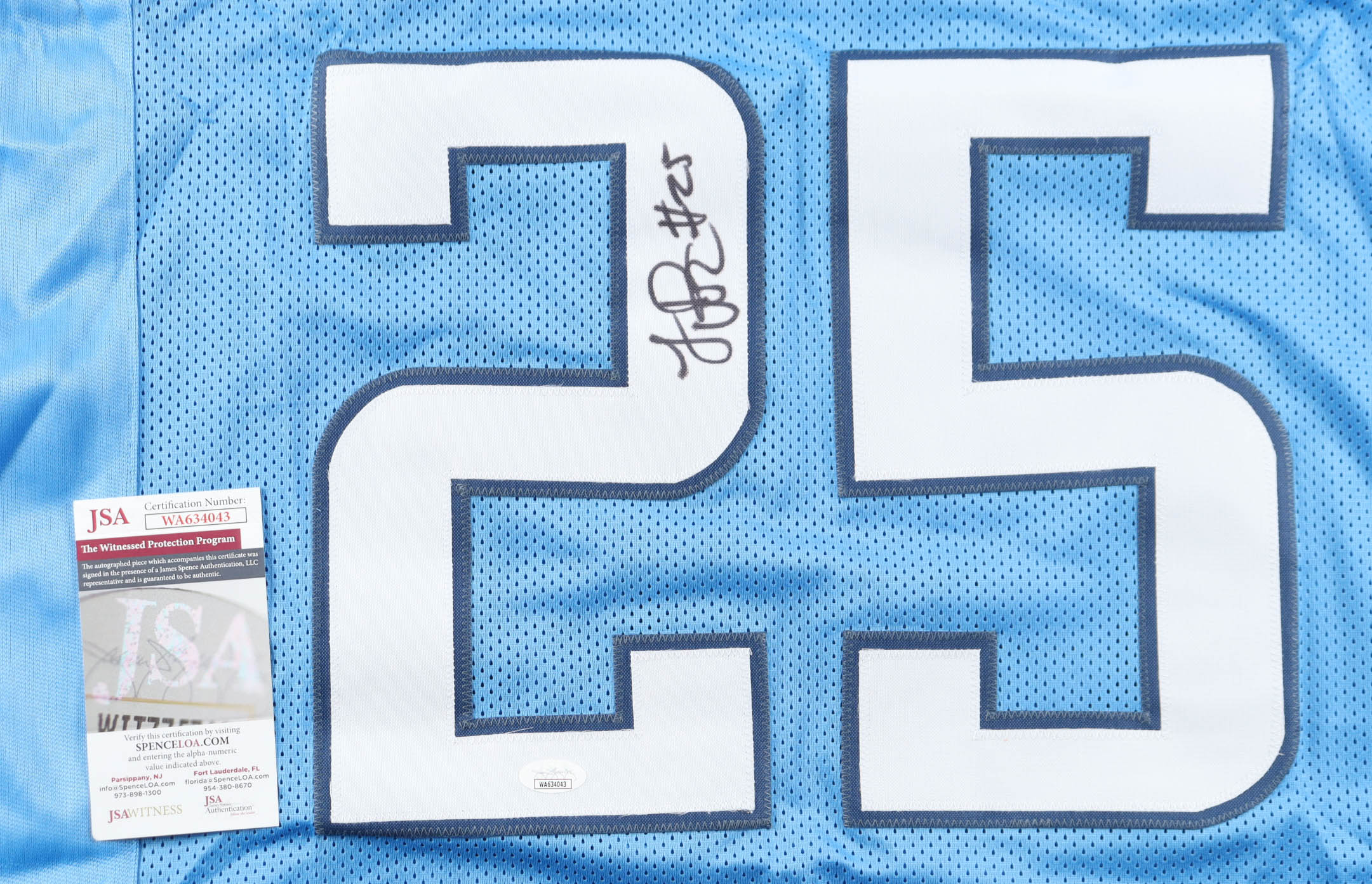 Custom jersey with everything sewn on, size XL. Hand-signed by LenDale White (Tennessee Titans).